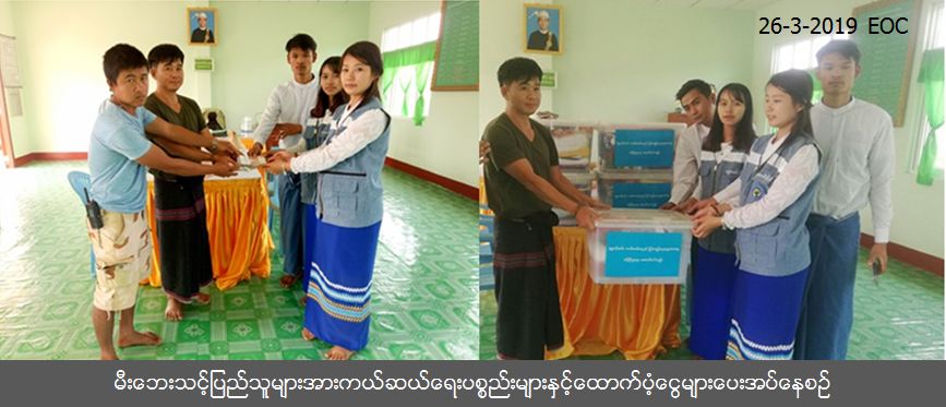 လူမှုဝန်ထမ်း၊ ကယ်ဆယ်ရေးနှင့် ပြန်လည်နေရာချထားရေးဝန်ကြီးဌာန၊ ဘေးအန္တရာယ်ဆိုင်ရာစီမံခန့်ခွဲမှုဦးစီးဌာန၊ မိုင်းပျဉ်းမြို့နယ်ဦးစီးမှူးရုံးမှ တာဝန်ရှိသူများသည် (၂၅-၃-၂၀၁၉) ရက်နေ့တွင် မိုင်းပျဉ်းမြို့၊ ဆင်မောင်းအုပ်စု၊ ဟွေ့ယောင်းကျေးရွာတွင် ဖြစ်ပွားခဲ့သော မီးလောင်မှုကြောင့် မီးဘေးသင့်အိမ်ထောင်စု (၅) စုအတွက် အိမ်ဆောက်ပစ္စည်းဖိုးထောက်ပံ့ငွေ (၅၀၀,၀၀၀ိ/-)၊ ဘေးသင့်လူဦးရေ (၂၆) ဦးအတွက် ဆန်ရိက္ခာ (၇) ရက်စာဖိုးထောက်ပံ့ငွေ (၅၄,၆၀၀ိ/-)၊ စုစုပေါင်းထောက်ပံ့ငွေ (၅၅၄,၆၀၀ိ/-) ကျပ်နှင့် ကယ်ဆယ်ရေးပစ္စည်း (၂၁) မျိုးပါ ပလပ်စတစ်ပုံး (၅) ပုံးတို့ကို (၂၅-၃-၂၀၁၉) ရက်နေ့တွင် မြို့နယ်အုပ်ချုပ်ရေးမှူးရုံး၌ မီးဘေးသင့်ပြည်သူများထံသို့ ကွင်းဆင်းထောက်ပံ့ခဲ့ပြီးဖြစ်ပါကြောင်း သိရှိရပါသည်။