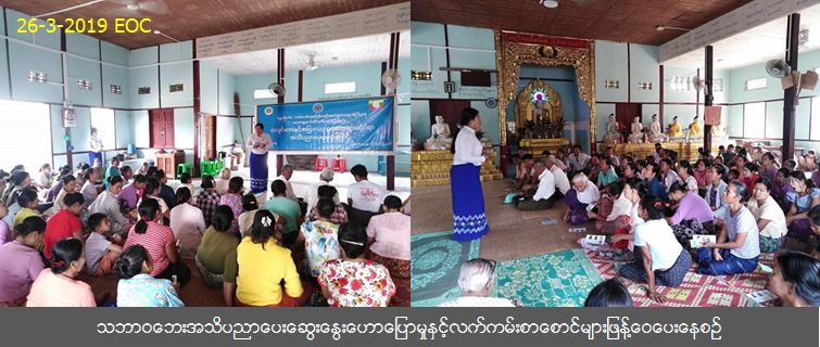 လူမှုဝန်ထမ်း၊ ကယ်ဆယ်ရေးနှင့် ပြန်လည်နေရာချထားရေးဝန်ကြီးဌာန၊ ဘေးအန္တရာယ်ဆိုင်ရာစီမံခန့်ခွဲမှုဦးစီးဌာန၊ မိုးမိတ်မြို့နယ်ဦးစီးမှူးရုံးမှ တာဝန်ရှိသူများသည် (၂၆-၃-၂၀၁၉) ရက်နေ့တွင် မိုးမိတ်မြို့နယ်၊ ရွှေဇာလီကျေးရွာဘုန်းကြီးကျောင်း၌ ပြည်သူ (၇၀) ဦးအား သဘာဝဘေး အသိပညာပေး ဘေးရှစ်မျိုး ဆောင်ရန်/ရှောင်ရန်များဟောပြောဆွေးနွေးခဲ့ပြီး လက်ကမ်းစာစောင်များ ဖြန့်ဝေပေးခဲ့ပါကြောင်း သိရှိရပါသည်။ #ar #shn_mar2019 Source: မိုးမိတ်မြို့နယ်ဦးစီးမှူးရုံး (ဘစမ)