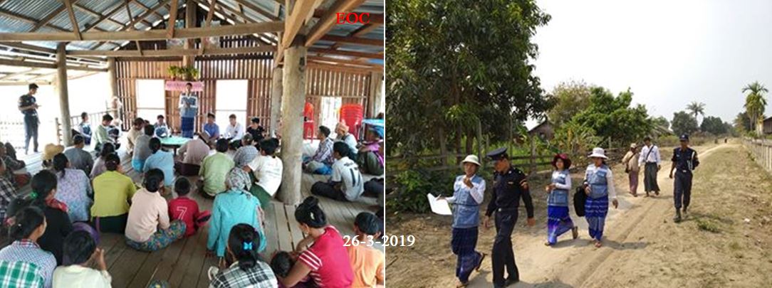 လူမှုဝန်ထမ်း၊ ကယ်ဆယ်ရေးနှင့် ပြန်လည်နေရာချထားရေးဝန်ကြီးဌာန၊ ဘေးအန္တရာယ်ဆိုင်ရာ စီမံခန့်ခွဲမှုဦးစီးဌာန၊ ကသာခရိုင် ဦးစီးမှူးရုံးမှတာဝန်ရှိသူများနှင့် မြို့နယ်အဆင့်ဌာနဆိုင်ရာများ လူမှုရေးအသင်းအဖွဲ့များ ပူးပေါင်း၍(၂၆-၃-၂၀၁၉)ရက်နေ့၌ ကသာမြို့နယ်၊ ငါးတဲကျေးရွာအုပ်စု၊ သံတောင်ကျေးရွာတွင် လေဘေးကြိုတင်ကာကွယ်ရေးလုပ်ငန်းတစ်ရပ်အနေဖြင့် လေဘေးဒဏ်ခံနိုင်ခြေ ရှိသည့် အိမ်ခြေများစာရင်း ကောက်ယူ ခြင်းနှင့် သဘာဝဘေးအသိပညာပေးဟောပြောခြင်းများဆောင်ရွက်ခဲ့ကြောင်း သိရှိရပါသည်။