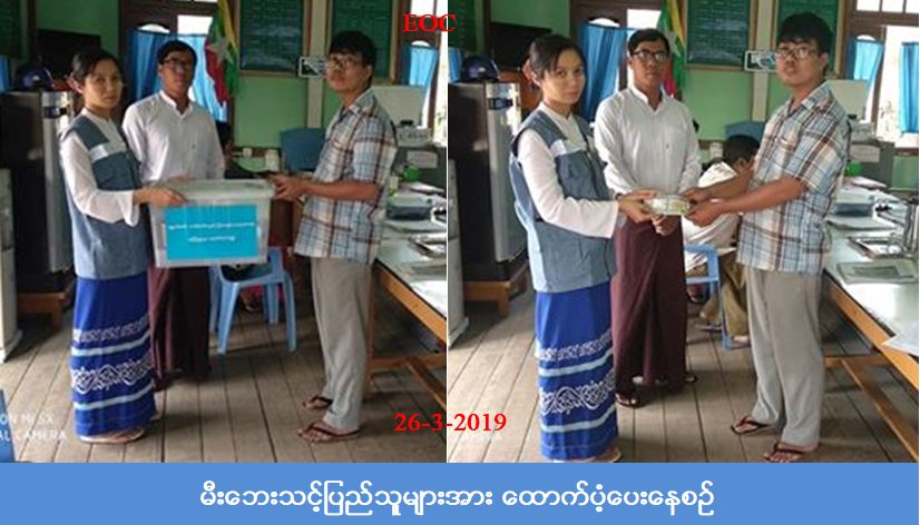 လူမှုဝန်ထမ်း၊ ကယ်ဆယ်ရေးနှင့်ပြန်လည်နေရာ ချထားရေးဝန်ကြီးဌာန၊ ဘေးအန္တရာယ်ဆိုင်ရာစီမံခန့်ခွဲမှု ဦးစီး ဌာန၊ (၁၃-၃-၂၀၁၉)ရက်နေ့တွင် မိုးညှင်းမြို့၊ နားခါးရပ်ကွက်နေ အိမ်ရှင်ဒေါ်ယဉ်ယဉ်ခိုင်၏ နေအိမ် သွပ်မိုး၊ အုတ်ညှပ် (၂)ထပ်နေအိမ်(၁)လုံး မီးလောင်ပျက်စီးဆုံးရှုံးခဲ့ပြီး ဘေးသင့်အိမ်ထောင်စု(၁)စု၊ လူဦးရေ(၃)အား ကယ်ဆယ်ရေးပစ္စည်း(၁၇)မျိုး အိမ်ထောင်စု(၁)စုစာ၊ ဆန်ရိက္ခာဖိုး (၆,၃၀၀)နှင့်အိမ်ဆောက်ပစ္စည်းဖိုး (၂၀၀,၀၀၀) ကျပ်၊ စုစုပေါင်းထောက်ပံ့(၂၀၆,၃၀၀) ကျပ်အား နားခါရပ်ကွက်အုပ်ချုပ်ရေးမှူးရုံးမှတဆင့် (၂၆-၃-၂၀၁၉)ရက်နေ့တွင် ကွင်းဆင်းထောက်ပံ့ပေးခဲ့ကြောင်း သိရှိရပါသည်။