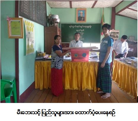 လူမှုဝန်ထမ်း၊ ကယ်ဆယ်ရေးနှင့် ပြန်လည်နေရာချထားရေးဝန်ကြီးဌာန၊ ဘေးအန္တရာယ်ဆိုင်ရာစီမံခန့်ခွဲမှု ဦးစီးဌာန ကချင်ပြည်နယ်ဦးစီးမှူးရုံးမှ တာဝန်ရှိသူများသည် မြစ်ကြီးခရိုင်၊ မြစ်ကြီးနားမြို့၊ ဧရာရပ်ကွက်၌ (၂၅-၃-၂၀၁၉) ရက်နေ့တွင် မီးလောင်မှုဖြစ်ပွားခဲ့ရာ မီးဘေးသင့်အိမ်ခြေ (၁) လုံး၊ အိမ်ထောင်စု (၁) စု၊ လူဦးရေ (၅) ဦးတို့အတွက် အိမ်ဆောက်ပစ္စည်းဖိုးထောက်ပံ့ငွေ (၂၀၀,၀၀၀ိ/-)၊ ဆန်ရိက္ခာ (၇) ရက်စာဖိုးထောက်ပံ့ငွေ (၁၀,၅၀၀ိ/-)နှင့် ကယ်ဆယ်ရေးပစ္စည်း (၁၇) မျိုး (၁) အိမ်ထောင်စုစာတို့အား (၂၈-၃-၂၀၁၉) ရက်နေ့ (၁၄း၀၀)နာရီအချိန်တွင် ဧရာရပ်ကွက်အုပ်ချူပ်ရေးမှူးရုံး၌ ထောက်ပံ့ပေးအပ်ခဲ့ပါသည်။