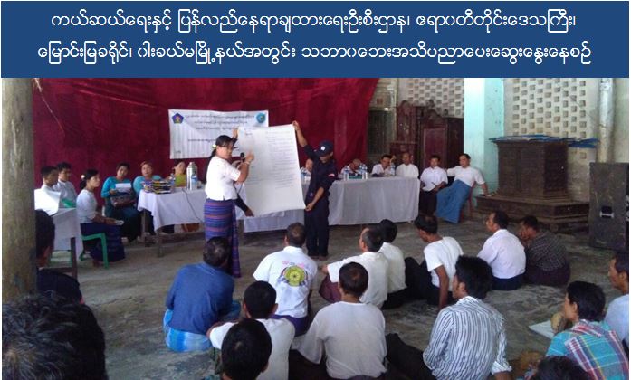 ကယ်ဆယ်ရေးနှင့် ပြန်လည်နေရာချထားရေးဦးစီးဌာန၊ မြောင်းမြခရိုင်ဦးစီးမှူးရုံးမှ (၂၇-၄-၂၀၁၆) ရက်နေ့တွင် မြောင်းမြခရိုင်၊ ဝါးခယ်မမြို့နယ်၊ ကျုံမငေးမြို့၊ ပိတ္တာလေးကျေးရွာ၌ “သဘာဝဘေးအသိပညာပေးဆွေးနွေးပွဲ” ကျင်းပပြုလုပ်ရာ အဆိုပါဆွေးနွေးပွဲသို့ ကျေးရွာနေပြည်သူ (၁၁၄) ဦးတက်ရောက်ခဲ့ကြောင်း သိရှိရပါသည်။
