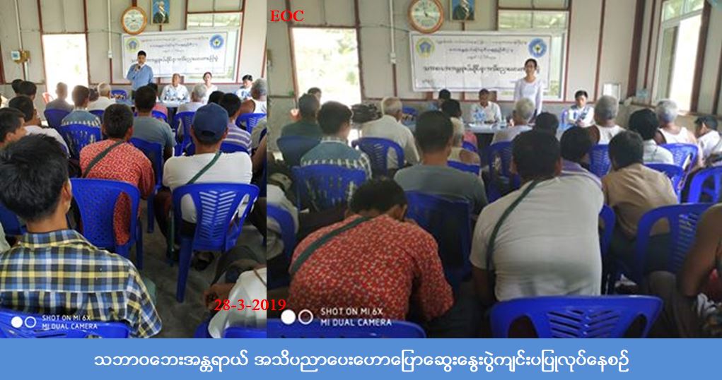 လူမှုဝန်ထမ်း၊ ကယ်ဆယ်ရေးနှင့် ပြန်လည်နေရာချထားရေးဝန်ကြီးဌာန၊ ဘေးအန္တရာယ်ဆိုင်ရာစီမံ ခန့်ခွဲမှုဦးစီးဌာန၊ မအူပင်ခရိုင်ဦးစီးမှူးရုံးမှ တာဝန်ရှိသူများသည်(၂၈-၃-၂၀၁၉)ရက်နေ့ (၁၁:၀၀) နာရီ အချိန်မှ (၁၂:၂၀)နာရီအချိန်အထိ မအူပင်မြို့နယ် လေးအိမ်စုကျေးရွာအုပ်စု၊ လေးအိမ်စုကျေးရွာတွင် သဘာဝဘေးအန္တရာယ် အသိပညာပေးဟောပြောဆွေးနွေးပြောကြားခြင်းနှင့် လက်ကမ်းစာစောင်များ ဖြန့်ဝေခဲ့ရာ ကျေးရွာသူ/သား (၉၀)ဦး တက်ရောက်ခဲ့ကြောင်း သိရှိရပါသည်။