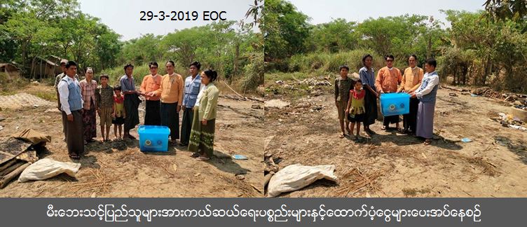 လူမှုဝန်ထမ်း၊ ကယ်ဆယ်ရေးနှင့် ပြန်လည်နေရာချထားရေးဝန်ကြီးဌာန၊ ဘေးအန္တရာယ်ဆိုင်ရာစီမံခန့်ခွဲမှုဦးစီးဌာန၊ မိုးညိုမြို့နယ်ဦးစီးမှူးရုံးမှ တာဝန်ရှိသူများသည် (၂၈-၃-၂၀၁၉) ရက်နေ့တွင် မိုးညိုမြို့နယ်၊ ဇောတိကရပ်ကွက်၊ ပန်းစံပါယ်လမ်းတွင် မီးလောင်မှုဖြစ်ပွားခဲ့ရာ မီးဘေးသင့်အိမ်ခြေ (၁) လုံး၊ အိမ်ထောင်စု (၁) စု၊ ဘေးသင့်ပြည်သူ (၄) ဦးတို့အတွက် အိမ်ဆောက်ပစ္စည်းဖိုးထောက်ပံ့ငွေ (၁၀၀၀၀၀) ကျပ်၊ ဆန်ရိက္ခာဖိုးထောက်ပံ့ငွေ (၈၄၀၀) ကျပ်နှင့် ကယ်ဆယ်ရေးပစ္စည်း (၁၆) မျိုးပါ (၁) ပုံးတို့ကို မီးဘေးသင့်ပြည်သူများလက်ဝယ်သို့ ကွင်းဆင်းထောက်ပံ့ပေးခဲ့ကြောင်း သိရှိရပါသည်။ #ha _fir #bgo_mar2019 Source: မိုးညိုမြို့နယ်ဦးစီးမှူးရုံး (ဘစမ)