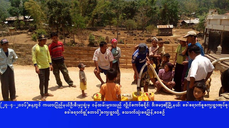 လူမှု၀န်ထမ်း၊ ကယ်ဆယ်ရေးနှင့်ပြန်လည်နေရာချထားရေးဝန်ကြီးဌာန၊ ကယ်ဆယ်ရေးနှင့်ပြန်လည်နေရာချထားရေးဦးစီး ဌာန၊ ကယားပြည်နယ်ဦးစီးမှူးရုံးမှ တာဝန်ရှိသူများသည် (၂၇-၄-၂၀၁၆) ရက်နေ့တွင် လွိုင်ကော်ခရိုင်၊ ဒီမောဆိုးမြို့နယ်၊ ဒေါရောက်ခူကျေးရွာအုပ်စု၊ ဒေါရောက်ခူ (တောင်) ကျေးရွာရှိပြည်သူများအတွက် ရေဂါလန် (၂၇၇၅) အား သွားရောက် ဖြန့်ဝေပေးခဲ့ကြောင်း သိရှိရသည်။