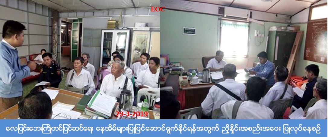 လူမှုဝန်ထမ်း၊ ကယ်ဆယ်ရေးနှင့် ပြန်လည်နေရာချထားရေးဝန်ကြီးဌာန၊ ဘေးအန္တရာယ်ဆိုင်ရာ စီမံခန့်ခွဲမှု ဦးစီးဌာန၊ မအူပင်ခရိုင်ဦးစီးမှူးရုံးမှ တာဝန်ရှိသူများသည် ဓနုဖြူမြို့နယ်အတွင်းရှိ ကျေးရွာများ၌ လေပြင်း ဘေးကြိုတင်ပြင်ဆင်ရေး နေအိမ်များ ပြုပြင်ဆောင်ရွက်နိုင်ရန်အတွက် ညှိနှိုင်းအစည်းအဝေးကို (၂၉-၃-၂၀၁၉) ရက်နေ့၊ (၁၄:၃၀)နာရီအချိန်တွင် အထွေထွေအုပ်ချုပ်ရေးဦးစီးဌာန မီးသတ်ဦးစီးဌာန၊ မြန်မာနိုင်ငံ ကြက်ခြေနီ အသင်း ကျေးရွာအုပ်ချုပ်ရေးမှူးတု့ိနှင့်အတူ ကျင်းပပြုလုပ်ခဲ့ကြောင်း သိရှိရပါသည်။