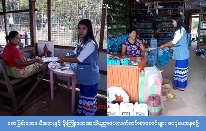 (၂၉-၃-၂၀၁၉)ရက်နေ့တွင် လူမှုဝန်ထမ်း၊ ကယ်ဆယ်ရေးနှင့်ပြန်လည်နေရာချ ထားရေးဝန်ကြီးဌာန၊ ဘေးအန္တရာယ်ဆိုင်ရာစီမံခန့်ခွဲမှု ဦးစီးဌာန၊ တနင်္သာရီတိုင်းဒေသကြီးဦးစီးမှူးရုံးမှ တာဝန်ရှိသူများသည် လေပြင်းဘေး၊ မီးဘေးနှင့် မိုးကြိုးဘေးအသိပညာပေးလက်ကမ်းစာစောင်များအား ထားဝယ်မြို့နှင့် ရေဖြူမြို့အတွင်းရှိ ရပ်ကွက်များသို့ ဝေငှအသိပညာပေးဆောင်ရွက်ခဲ့ကြောင်း သိရှိရပါသည်။