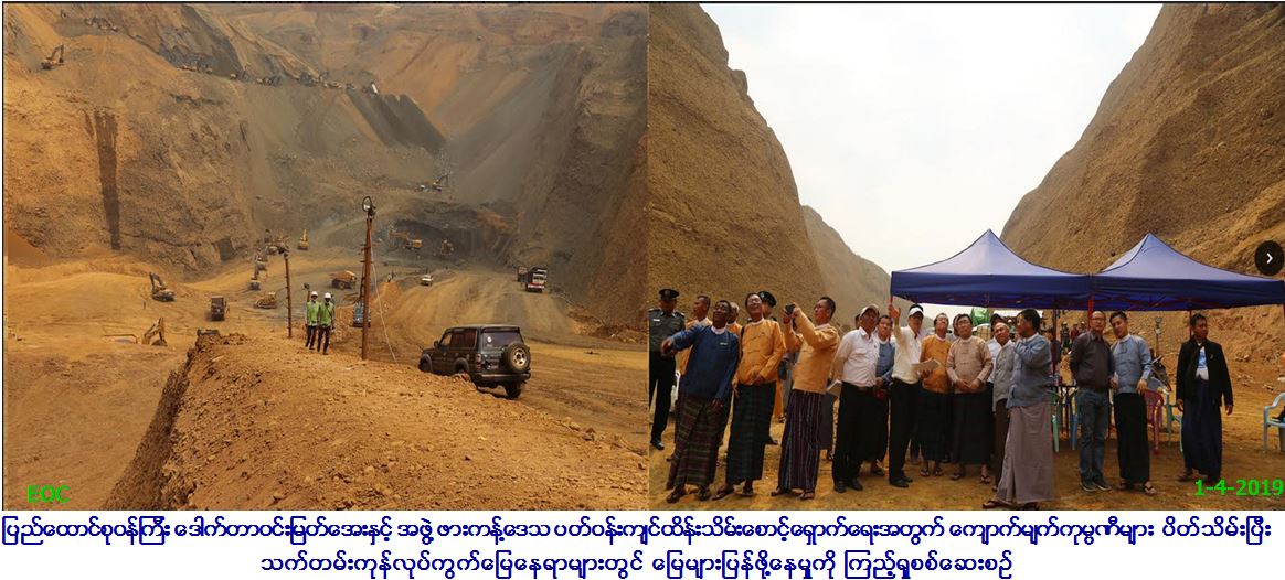 ထို့နောက် ပြည်ထောင်စုဝန်ကြီးနှင့်အဖွဲ့သည် လက်ရှိ တူးဖော်ခွင့်ရ လုပ်ကွက်တွင် ဘေးအန္တရာယ်ကင်းရှင်းစွာ တူးဖော်နိုင်ရေး အတွက် လစ်လပ်၊မက်လင်ချောင်း အကျိုးတူ (၂) လုပ်ကွက်အတွင်း ခေါင်းပေါင်းမြေဖယ်ရှားနေခြင်းကို သွားရောက်ကြည့်ရှုခဲ့ကြပါ သည်။