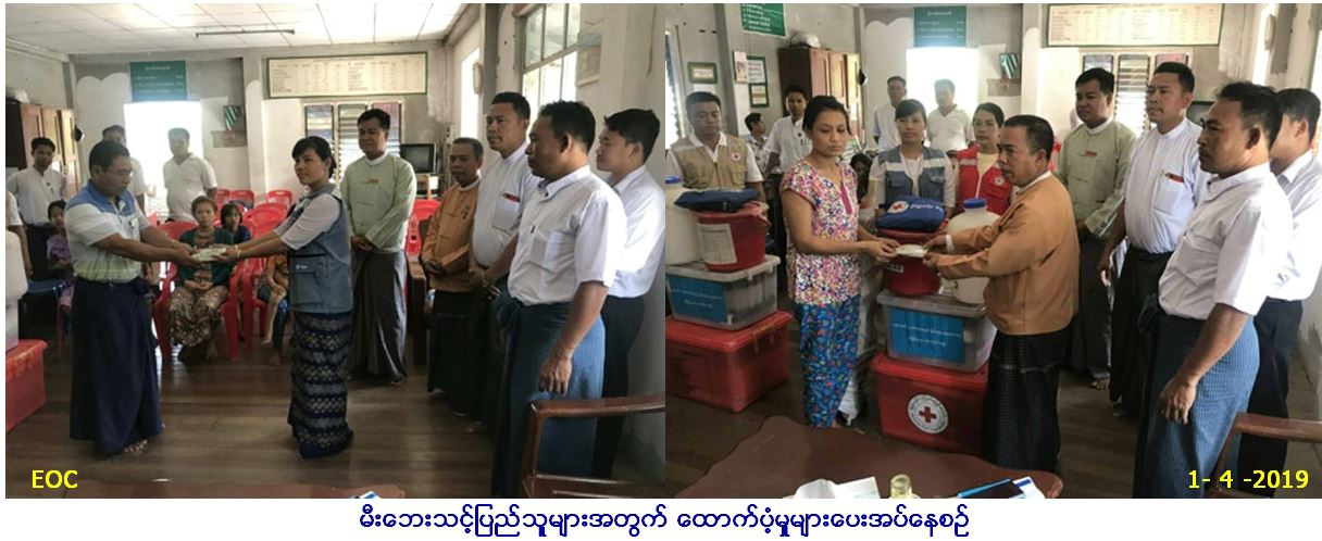 လူမှုဝန်ထမ်း၊ ကယ်ဆယ်ရေးနှင့်ပြန်လည်နေရာချထားရေးဝန်ကြီးဌာန၊ မြိတ်ခရိုင်ဦးစီးမှူးရုံးမှ တာဝန်ရှိသူများသည် (၃၁.၃.၂၀၁၉) ရက်နေ့တွင် မြိတ်ခရိုင်၊ မြိတ်မြို့နယ်၊ မြိတ်တောင်ကျေးရွာအုပ်စု အေးချမ်းသာယာရပ်ကွက်မီးဘေးမှ မီးဘေးသင့်အိမ်ထောင်စု (၂)စုအတွက် ကယ်ဆယ်ရေးပစ္စည်း (၁၆)မျိုး (၂) စုစာ အိမ်(၂)လုံးအတွက် အိမ်ဆောက်ပစ္စည်းဖိုး(၂)သိန်း ဘေးသင့်လူဦးရေ (၁၀)ဦးအတွက် ဆန်ဘိုး(၂၁၀၀၀/-)ကျပ် စုစုပေါင်း (၂၂၁၀၀၀/-)ကျပ်တို့အား (၁.၄.၂၀၁၉)ရက်နေ့ (၁၀း၃၀)နာရီအချိန်တွင် သွားရောက်ထောက် ပံ့အပ်ခဲ့ကြောင်း သတင်းရရှိပါသည်။