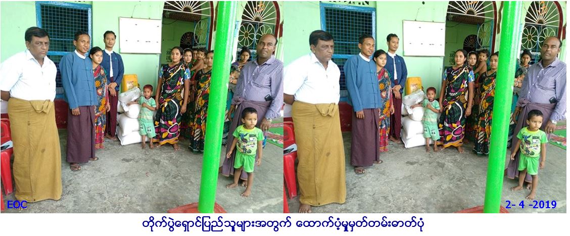 လူမှုဝန်ထမ်း၊ ကယ်ဆယ်ရေးနှင့် ပြန်လည်နေရာချထားရေးဝန်ကြီးဌာန၊ ဘေးအန္တရာယ်ဆိုင်ရာစီမံခန့်ခွဲမှုဦးစီးဌာန၊ ရခိုင် ပြည်နယ်ဦးစီးမှူးရုံးမှ တာဝန်ရှိသူများသည် မောင်တောမြို့နယ်၊ ခမောင်းဆိပ်ကျေးရွာမှ စစ်တွေမြို့ ဟိန္ဒူဘုရားကျောင်းသို့် ထပ်တိုး ရောက်ရှိလာသော ဟိန္ဒူဘာသာဝင် အိမ်ထောင်စု (၁၁)စု၊ လူဦးရေ (၂၉)ဦးအတွက် အခြေခံစားသောက်ကုန် (ဆန်၊ဆီ၊ဆား၊ပဲ) (၁)လစာကို (၂.၄.၂၀၁၉)ရက်တွင် ထောက်ပံ့ပေးအပ်ခဲ့ပါကြောင်း သတင်းရရှိပါသည်။