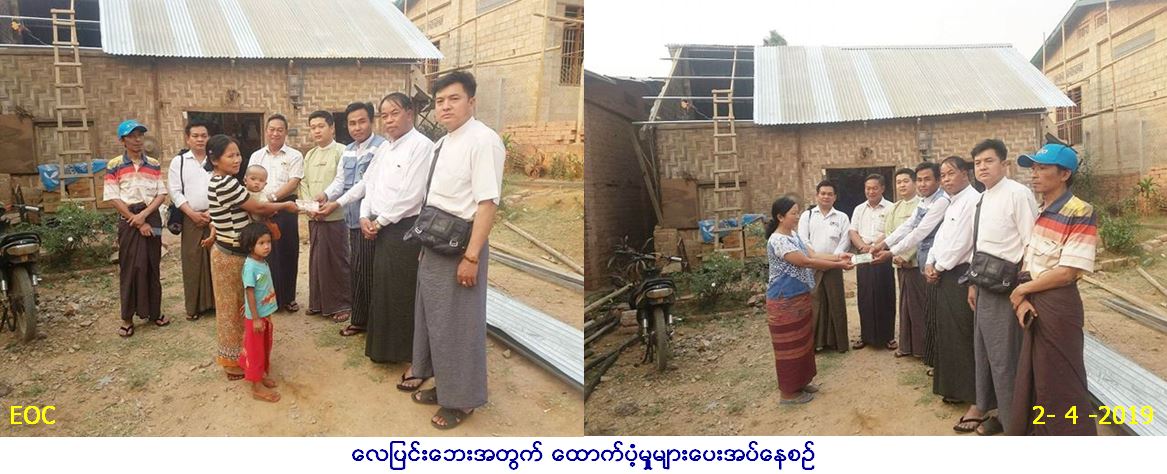 လူမှုဝန်ထမ်း၊ ကယ်ဆယ်ရေးနှင့်ပြန်လည်နေရာ ချထားရေးဝန်ကြီးဌာန၊ ဘေးအန္တရာယ်ဆိုင်ရာ စီမံခန့်ခွဲမှုဦးစီးဌာန၊ ကျောက်မဲခရိုင် ဦးစီမှူးရုံးမှ တာဝန်ရှိသူများသည် ကျောက်မဲမြို့နယ်၊ အမှတ်(၂)ရပ်ကွက်၊ နယ်မြေ(၁)၊ ကျောက်တောင်ရပ်တွင် (၃၁-၃-၂၀၁၉)ရက်နေ့ ၌ လေပြင်းတိုက်ခတ်မှုကြောင့် အမိုးလန်ပျက်စီးခဲ့သည့် နေအိမ် (၂)လုံးအတွက် အိမ်ဆောက်ပစ္စည်းဖိုးငွေ (၁၇၀,၀၀၀/-)ကျပ်အား (၂-၄-၂၀၁၉)ရက်နေ့ တွင် ကျောက်မဲမြို့နယ်အုပ်ချုပ်ရေးမှူး၊ မြို့မိ/မြို့ဖများနှင့်အတူ ပြည်သူများလက် ဝယ်အရောက် ထောက်ပံ့ပေးအပ်ခဲ့ပါကြောင်း သတင်းရရှိပါသည်။
