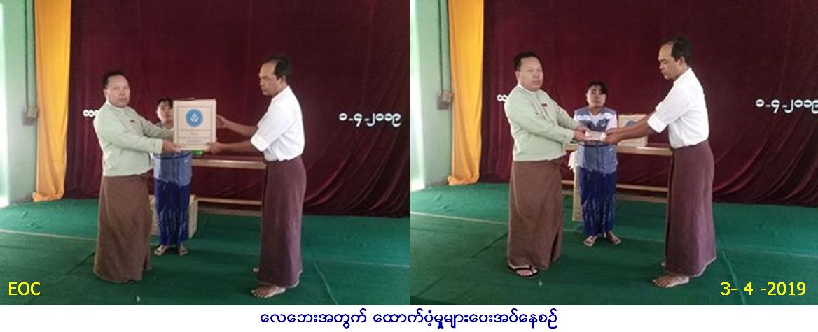 လူမှုဝန်ထမ်း၊ ကယ်ဆယ်ရေးနှင့်ပြန် လည်နေရာချထားရေးဝန်ကြီးဌာန၊ ဘေးအန္တရာယ်ဆိုင်ရာစီမံခန့်ခွဲမှုဦးစီးဌာန၊ သရက်ခရိုင်ဦးစီးမှူး ရုံးမှ တာဝန်ရှိသူများသည် သရက်မြို့နယ်၊ ပြရေကျေးရွာအုပ်စု၊ စက်တောင်ကျေးရွာတွင် (၁.၄.၂၀၁၉)ရက်နေ့၊ (၂၀း၀၀)နာရီအချိန်၌ လေပြင်းတိုက်ခတ် မှုကြောင့် နေအိမ်(၃)လုံးအမိုးလန်ခဲ့ပြီး အိမ်ထောင်စု(၃)စု၊ လူဦးရေ စုစုပေါင်း(၁၅)ဦး ဘေးသင့်ခဲ့ရာ ဘေးသင့်လူဦး ရေ (၁၅)ဦးအတွက် ဆန်ရိက္ခာဖိုး(၇)ရက်စာ (၃၁,၅၀၀/-)ကျပ်နှင့် နေအိမ်(၃)လုံးအတွက် အိမ်ဆောက်ပစ္စည်းဖိုး (၁၂၀,၀၀၀/-)ကျပ်၊ ရန်ပုံငွေစုစုပေါင်း (၁၅၁,၅၀၀/-)ကျပ်နှင့် ကယ်ဆယ်ရေးပစ္စည်း(၉)မျိုး (၃)အိမ်ထာင်စာတို့အား (၃.၄.၂၀၁၉)ရက်နေ့တွင် သရက် မြို့နယ် အထွေထွေအုပ်ချုပ်ရေးဦးစီးဌာနမှ တာဝန်ရှိသူများ၏ ရှေ့မှောက်တွင် ကျေးရွာစာရေးလက်ဝယ်သို့ လွှဲပြောင်းထောက်ပံ့ ပေးအပ်ခဲ့ပါကြောင်း သတင်းရရှိပါသည်။