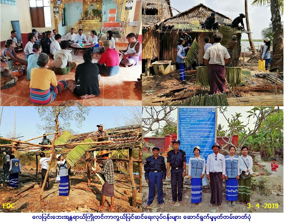 လူမှုဝန်ထမ်း၊ ကယ်ဆယ်ရေးနှင့်ပြန်လည်နေရာ ချထားရေးဝန်ကြီးဌာန၊ ဘေးအန္တရာယ်ဆိုင်ရာ စီမံခန့်ခွဲမှုဦးစီးဌာန၊ လပွတ္တာခရိုင်ဦးစီးမှူးရုံးမှ တာဝန်ရှိသူများသည် (၃.၄၂၀၁၉)ရက်နေ့တွင် မိုးကြိုကာလဖြစ်သော ဧပြီ၊ မေ ကာလများတွင် လေပြင်းများကျရောက်နိုင်သဖြင့် လပွတ္တာခရိုင်၊ လပွတ္တာမြို့နယ်၊ ကျောက်တန်းကြီးကျေးရွာ အုပ်စု၊ ကျောက်တန်းကြီးကျေးရွာနှင့် နေရာပျံချီကျေးရွာများတွင် လေပြင်းဘေးအန္တရာယ်ကြိုတင်ကာကွယ် ပြင်ဆင်ရေးလုပ်ငန်းများဖြစ်သော လေဘေးဒဏ်ခံနိုင်ရည်ရှိသည့် လူနေအိမ်များဖြစ်စေရေး အတွက် ရပ်ကွက်အုပ်ချုပ်ရေးမှူး၊ ရပ်ကွက်ကျေးရွာ စာရေး၊ အရံမီးသတ်များ၊ ရာအိမ်မှူးများ၊ ရပ်မိရပ်ဖများ၊ ကျေးရွာနေပြည်သူများနှင့် အတူပူးပေါင်း၍ နေအိမ်များပြုပြင်ပေးခြင်း၊ ဗီနိုင်းစိုက်ထူခြင်း၊ ဘေးအန္တရာယ်ဆိုင်ရာ အသိပညာပေးလက်ကမ်းစာစောင်များ ဖြန့်ဝေပေးခြင်းများ ဆောင်ရွက်ခဲ့ပါကြောင်း သတင်းရရှိပါသည်။