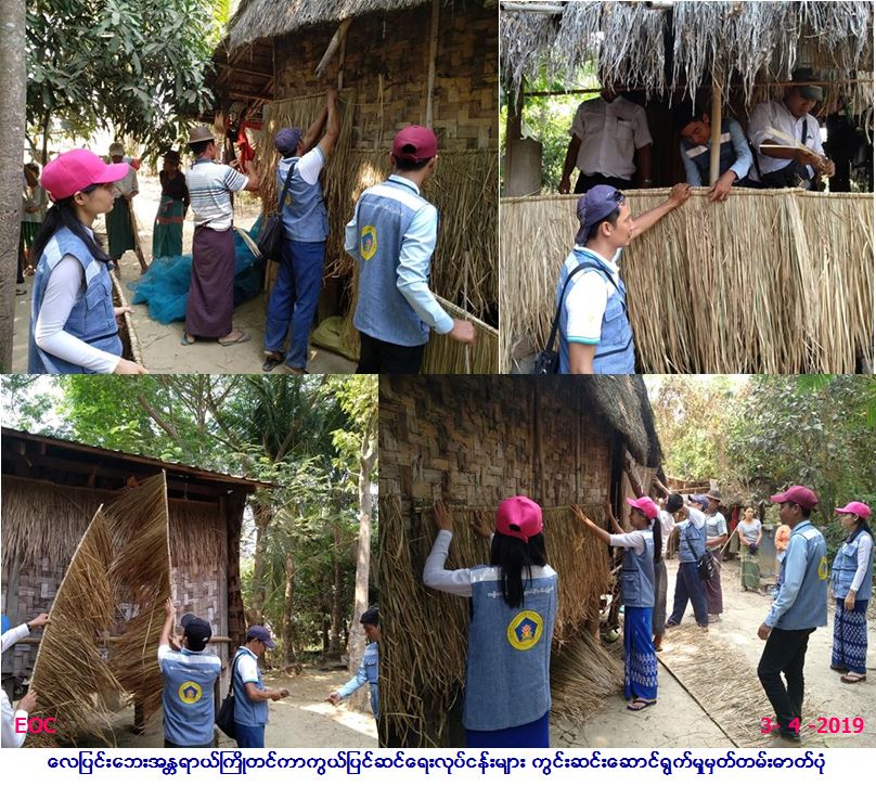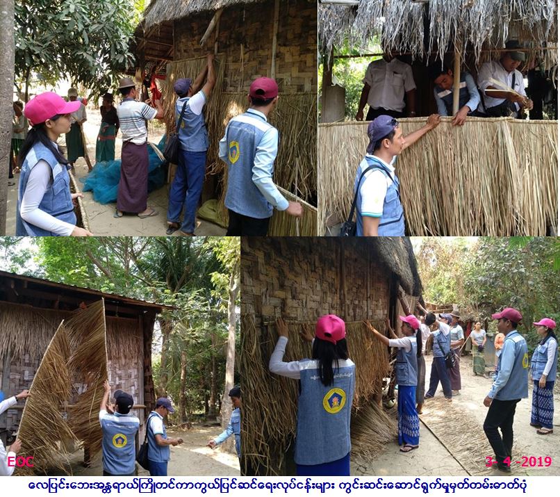 လူမှုဝန်ထမ်း၊ ကယ်ဆယ်ရေးနှင့်ပြန်လည်နေရာ ချထားရေးဝန်ကြီးဌာန၊ ဘေးအန္တရာယ်ဆိုင်ရာ စီမံခန့်ခွဲမှုဦးစီးဌာန၊ ပဲခူးတိုင်းဒေသကြီး ဦးစီးမှူးရုံးမှ တာဝန်ရှိသူများက (၃.၄.၂၀၁၉) ရက်နေ့တွင် ပဲခူးတိုင်းဒေသကြီး၊ ပဲခူးခရိုင်၊ ရွှေကျင်မြို့နယ်၊ ဒလဆိပ်ကျေးရွာအုပ်စု၊ မိုးခို ကျေးရွာနှင့် မဘီးကျေးရွာအုပ်စု၊ မဘီးရွာဟောင်းကျေးရွာတို့သို့ ရွှေကျင်မြို့နယ်၊ ပြည်သူ့လွှတ်တော်ကိုယ်စားလှယ်၊ အမျိုးသား လွှတ်တော်ကိုယ်စားလှယ်၊ ရွှေကျင်လူငယ်ပရဟိတအသင်းအဖွဲ့ဝင်များနှင့်အတူသွားရောက်ပြီး လေဘေးကြိုတင်ကာ ကွယ်ရေး အိုးအိမ်ပြုပြင်မှုလုပ်ငန်းများ ကွင်းဆင်းဆောင်ရွက်ခဲ့ပါကြောင်း သတင်းရရှိပါသည်။