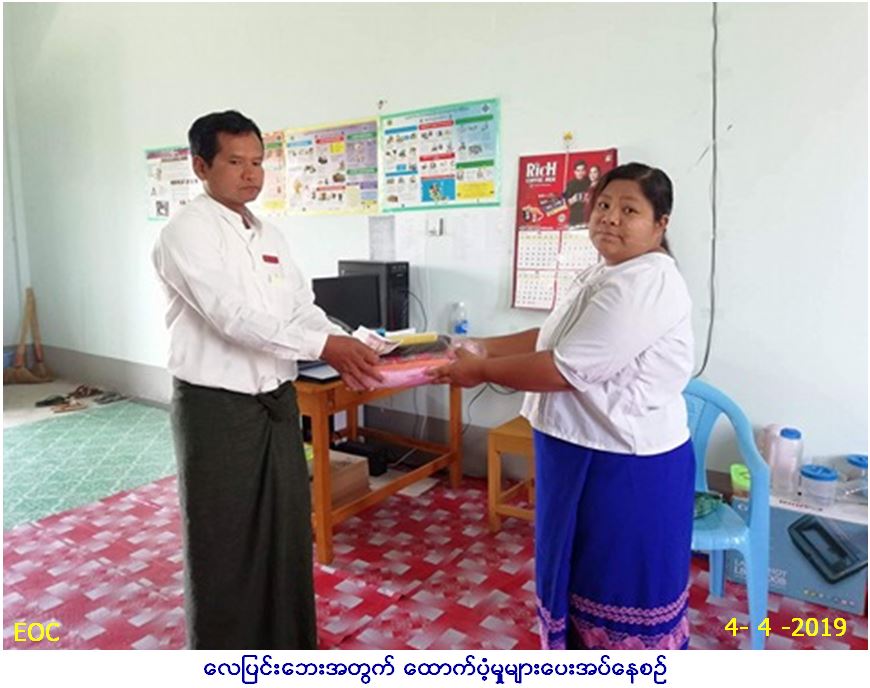 လူမှုဝန်ထမ်း၊ ကယ်ဆယ်ရေးနှင့်ပြန်လည်နေရာ ချထားရေးဝန်ကြီးဌာန၊ ဘေးအန္တရာယ်ဆိုင်ရာ စီမံခန့်ခွဲမှုဦးစီးဌာန၊ ယင်းမာပင်ခရိုင်ဦးစီး မှူးရုံးမှ တာဝန်ရှိသူများသည် စစ်ကိုင်းတိုင်းဒေသကြီး၊ ယင်းမာပင်ခရိုင်၊ ပုလဲမြို့နယ်၊ ဝက်ကျကျေးရွာအုပ်စု၊ ဝက်ကျကျေးရွာ၌ (၃.၄.၂၀၁၉)ရက်နေ့ လေပြင်းတိုက်ခတ်မှုကြောင့် နေအိမ်ခေါင်မိုးတစ်ခြမ်း အမိုးလန်နေအိမ် (၁)လုံးအတွက်ကယ်ဆယ်ရေးပစ္စည်း (၅)မျိုး (ကျားလုံချည်၊ မလုံချည်၊ တဘက်၊ တီရှပ်၊ ဆပ်ပြာ) တစ်အိမ်ထောင်စာနှင့် အိမ်ဆောက်ပစ္စည်းထောက်ပံ့ငွေ (၃၀,၀၀၀/-)ကျပ်တို့အား (၄.၄.၂၀၁၉) ရက်နေ့တွင် ပုလဲမြို့နယ် အထွေထွေအုပ်ချုပ်ရေး ဦးစီးဌာနမှတဆင့် ထောက်ပံ့ပေးခဲ့ပါကြောင်း သတင်းရရှိပါသည်။