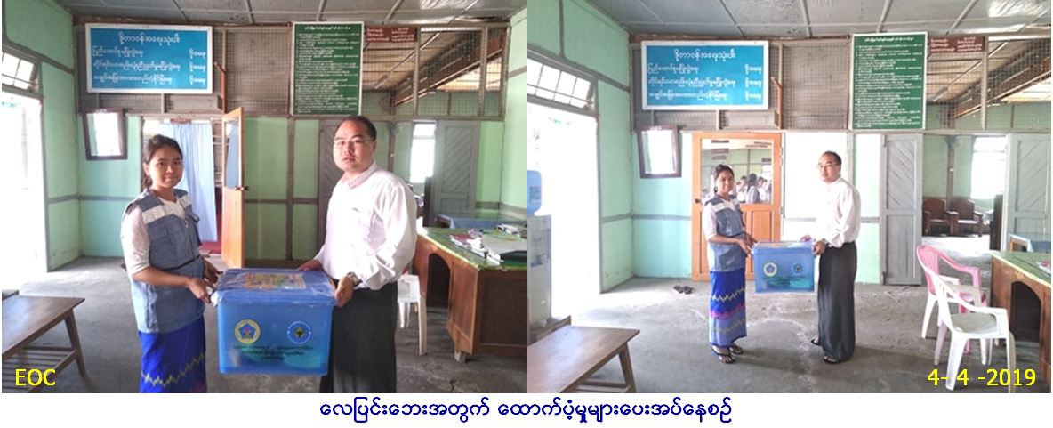 လူမှုဝန်ထမ်း၊ ကယ်ဆယ်ရေးနှင့် ပြန်လည်နေရာချထားရေးဝန်ကြီးဌာန၊ ဘေးအန္တရာယ်ဆိုင်ရာစီမံခန့်ခွဲမှုဦးစီးဌာန၊ ကသာခရိုင် ဦးစီးမှူးရုံးမှ တာဝန်ရှိသူများသည် ကသာခရိုင်၊ အင်းတော်မြို့နယ်ဟောင်းတုန်း အုပ်စု၊ ဆားမှော်ကျေးရွာနှင့် နမီးအုပ်စု၊ နားမကျိုင်း ကျေးရွာများတွင် (၂.၄.၂၀၁၉)ရက်နေ့ လေပြင်းတိုက်ခိုက် မှုကြောင့် ပြိုလဲအိမ်ထောင်စု(၁)စုအတွက် ကယ်ဆယ်ရေးပစ္စည်း(၁၀)မျိုး (၁) အိမ်ထောင်စာ၊ အိမ်ဆောက်ပစ္စည်း ဖိုးထောက်ပံ့ငွေ (၁၀၀,၀၀၀/-)ကျပ်နှင့် အမိုးလန်နေအိမ်(၁)အိမ်အတွက် ကယ်ဆယ်ရေး ပစ္စည်း (၆)မျိုး (၁)အိမ်ထောင်စာနှင့် အိမ်ဆောက်ပစ္စည်းဖိုး (၅၀,၀၀၀/-)ကျပ်တို့အား ဘေးသင့်ပြည်သူများ ထံသို့ (၄.၄.၂၀၁၉)တွင်