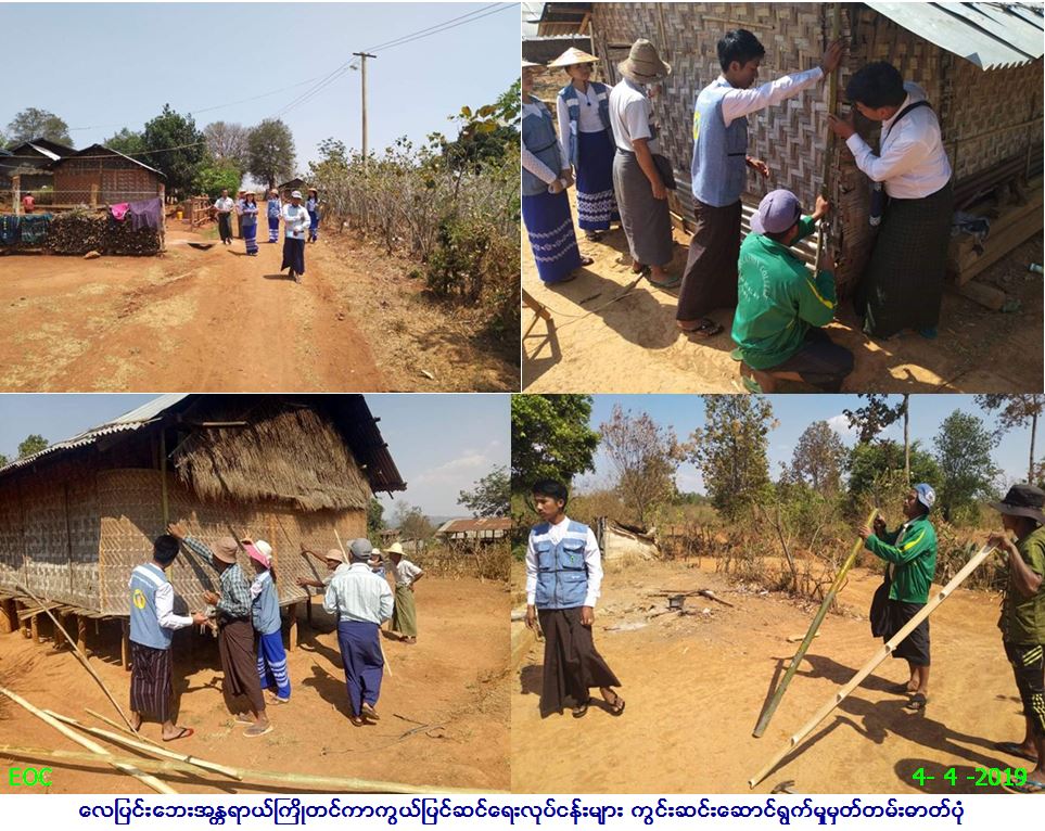 လူမှုဝန်ထမ်း၊ ကယ်ဆယ်ရေးနှင့် ပြန်လည်နေရာချထားရေးဝန်ကြီးဌာန၊ ဘေးအန္တရာယ်ဆိုင်ရာစီမံခန့်ခွဲမှုဦးစီးဌာန၊ ရှမ်းပြည်နယ် ဦးစီးမှူးရုံးမှ တာဝန်ရှိသူများသည် ဧပြီလ(၄)ရက်နေ့တွင် ပင်းတယမြို့နယ်၊ နောင်ရဲကျေးရွာ၊ မိုင်းအင်ကျေးရွာ၊ ပန်းမက်ကျေးရွာနှင့် ဖောင်းပြင်ကျေးရွာများရှိ နေအိမ်များအား လေပြင်းဘေးဒဏ်ခံနိုင်စေရေးအတွက် အမိုး၊ အကာများပြုပြင်ခြင်း၊ နေအိမ်များပေါ်သို့ ကျိုးကျနိုင်သော သစ်ပင်သစ်ကိုင်းများကို ခုတ်ထွင်ရှင်းလင်းခြင်းနှင့် လေပြင်းဘေးဒဏ် ကြိုတင်ကာကွယ်ရေး လက်ကမ်းစာစောင် ဝေငှပေးခြင်းတို့ကို ကျေးရွာများအတွင်းရှိ လေပြင်းဘေးကြိုတင်ကာကွယ်ရေးအဖွဲ့များ၊ ကျေးရွာနေပြည်သူများနှင့်အတူ ကွင်းဆင်း ပူးပေါင်းဆောင်ရွက်ခဲ့ပါကြောင်း သတင်းရရှိပါသည်။