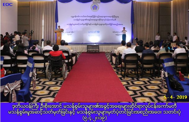 အထူးသဖြင့် မသန်စွမ်းသူများ၏ ရုပ်ပိုင်းဆိုင်ရာ၊ စိတ်ပိုင်းဆိုင်ရာ၊ လူမှုရေးပိုင်းဆိုင်ရာ၊ စီးပွားရေးဆိုင်ရာ အတားအဆီးများအား ဖယ်ရှားပေးရေး၊ ဖွံ့ဖြိုးတိုးတက်မှု လုပ်ငန်းစဉ်များတွင် ပေါင်းစည်းပါဝင်နိုင်ရေး၊ မသန်စွမ်းသူများအနေဖြင့် နိုင်ငံတော်အစိုးရနှင့် အခြားမိတ်ဖက်အဖွဲ့ အစည်းများမှ ပံ့ပိုးသည့်သင်တန်းများနှင့် ဖွံ့ဖြိုးမှု အစီအစဉ်များတွင် ပါဝင်ပြီး၊ အများနည်းတူ အကျိုးကျေးဇူးများ ရရှိခံစားနိုင်စေရေးအတွက် အလွန်အရေးပါသည့် မသန်စွမ်းမှုအဆင့် သတ်မှတ် ခြင်းနှင့် မသန်စွမ်းသူများ မှတ်ပုံတင်ခြင်းစနစ်တစ်ရပ် ပေါ်ထွက်လာစေရေးအတွက် ကြိုးပမ်း ဆောင်ရွက်နေခြင်းဖြစ်ပါကြောင်း၊
