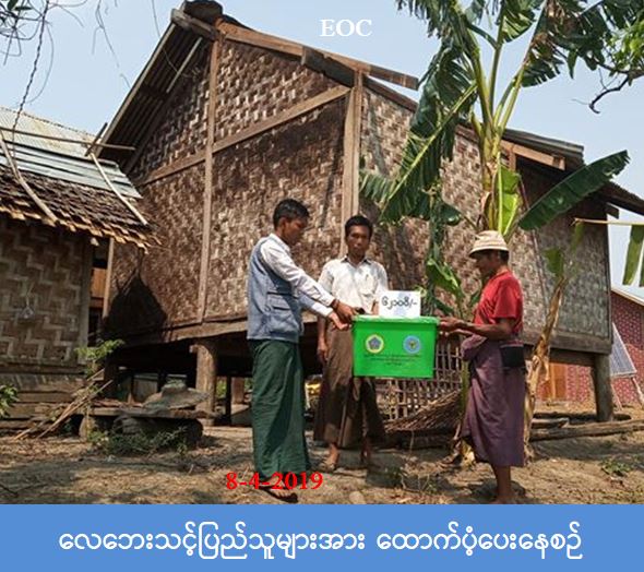 လူမှုဝန်ထမ်း၊ ကယ်ဆယ်ရေးနှင့် ပြန်လည်နေရာချထားရေးဝန်ကြီးဌာန၊ ဘေးအန္တရာယ်ဆိုင်ရာ စီမံခန့်ခွဲမှုဦးစီးဌာန၊ ဂန့်ဂေါခရိုင်ဦးစီးမှူးရုံးမှ တာဝန်ရှိသူများသည် ဂန့်ဂေါခရိုင်၊ ဂန့်ဂေါမြို့နယ်၊ ကြက်ရိုးကျေးရွာအုပ်စု၊ ဖုန်းဆိုးကြယ်ကျေးရွာ၌ (၆-၄-၂၀၁၉) ရက်နေ့၊ (၁၆း၀၀) နာရီအချိန်တွင် ဖြစ်ပွားခဲ့သော လေပြင်းတိုက်ခတ်မှုကြောင့် အမိုးလန် အိမ်ခြေ (၁) လုံး၊ အိမ်ထောင်စု (၁) စု၊ လူဦးရေ (၁) ဦးတို့အတွက် အိမ်ဆောက်ပစ္စည်းဖိုးငွေ (၆၀,၀၀၀) ကျပ်၊ ဆန်ရိက္ခာဖိုးငွေ (၂,၁၀၀) ကျပ်နှင့် ကယ်ဆယ်ရေးပစ္စည်း (၁၀) မျိုး အိမ်ထောင်စု (၁) စုစာတို့အား (၈-၄-၂၀၁၉) ရက်နေ့၊ (၁၃:၃၀) နာရီ အချိန်တွင် ဖုန်းဆိုးကြယ်ကျေးရွာ အုပ်ချုပ်ရေးမှူးနှင့်အတူ ဘေးသင့်ပြည်သူများ လက်ဝယ်အရောက် သွားရောက်ထောက်ပံ့ပေးအပ်ခဲ့ကြောင်း သိရှိရပါသည်။