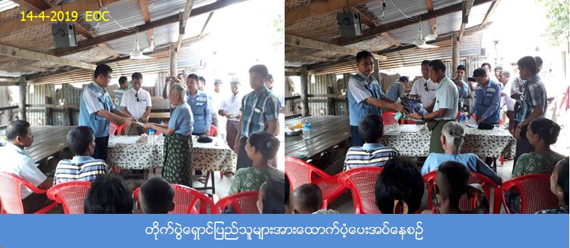 ပေါက်တောမြို့နယ်၊ ဘဝမ်းချောင်းဝစုရပ်ကွက်၊ ဘဝမ်းဘုန်းတော်ကြီးကျောင်းတွင် ယာယီခိုလုံလျှက်ရှိသည့် တိုက်ပွဲရှောင် အိမ်ထောင်စု (၁၄) စုမှ လူဦးရေ (၆၇) ဦးတို့အတွက် ဆန်ရိက္ခာ (၁) လစာဖိုးထောက်ပံ့ငွေ (၆၀၃၀၀၀)ကျပ်နှင့် ကယ်ဆယ်ရေးပစ္စည်း (၄) မျိုး (ကျားလုံချည်၊ မလုံချည်၊ တဘက်၊ တီရှပ်) တို့အား လူမှုဝန်ထမ်း၊ ကယ်ဆယ်ရေးနှင့် ပြန်လည်နေရာချထားရေးဝန်ကြီးဌာန၊ ဘေးအန္တရာယ်ဆိုင်ရာစီမံခန့်ခွဲမှု ဦးစီးဌာန၊ ရခိုင်ပြည်နယ်ဦးစီးမှူးမှ (၁၄-၄-၂၀၁၉) ရက်နေ့တွင် ပြည်သူများ လက်ဝယ်အရောက် ထောက်ပံ့ပေးအပ်ခဲ့ကြောင်း သိရှိရပါသည်။ #ha_otr #rke_apr2019