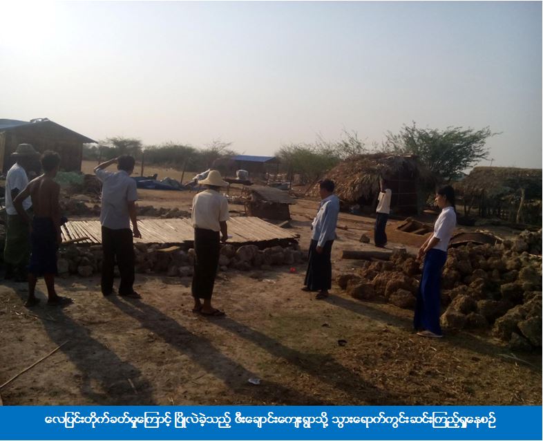 (၂၈-၄-၂၀၁၆) ရက်နေ့တွင် မန္တလေးတိုင်းဒေသကြီး၊ ကယ်ဆယ်ရေးနှင့် ပြန်လည်နေရာချထားရေးဦးစီးမှူးရုံးမှ (၂၂-၄-၂၀၁၆) ရက်နေ့တွင် မန္တလေးတိုင်းဒေသကြီး၊ တံတားဦးမြို့နယ်၊ ဇီးချောင်းကျေးရွာ၌ လေပြင်းတိုက်ခတ်မှုကြောင့် ပြိုလဲခဲ့သည့် အိမ်ခြေ (၂၀၇) လုံးအတွက် တစ်အိမ်ထောင်စုလျှင် အိမ်ဆောက်ပစ္စည်းဖိုးငွေ (၅၀၀၀၀) နှုန်းဖြင့် ့စုစုပေါင်း ငွေကျပ် (၁၀၃၅၀၀၀၀) ကို မြို့နယ်အထွေထွေအုပ်ချုပ်ရေးမှူးရုံးတွင် ထပ်မံထောက်ပံ့ပေးအပ်ခဲ့ပြီး ဘေးဖြစ်ပွားခဲ့သည့် ဇီးချောင်းကျေးရွာသို့ ကွင်းဆင်းကြည့်ရှုခဲ့ကြကြောင်း သိရှိရပါသည်။