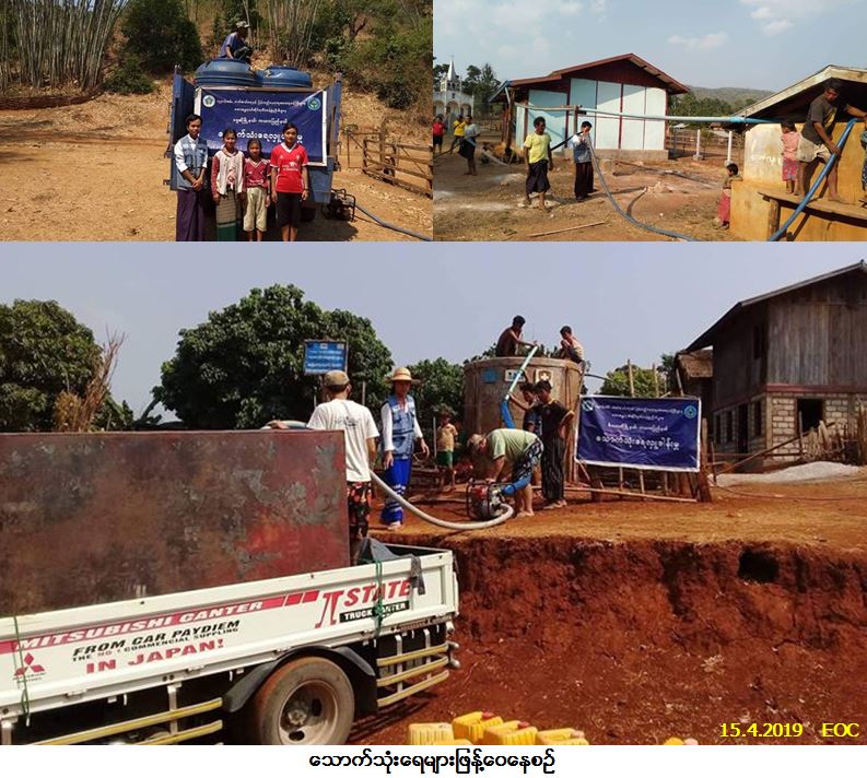 လူမှုဝန်ထမ်း၊ ကယ်ဆယ်ရေးနှင့် ပြန်လည်နေရာချထားရေးဝန်ကြီးဌာန၊ ဘေးအန္တရာယ်ဆိုင်ရာစီမံခန့်ခွဲမှုဦးစီးဌာန၊ ကယားပြည်နယ်ဦးစီးမှူးရုံးမှတာဝန်ရှိသူများသည် ဖရူဆိုမြို့နယ်မြို့နယ်အုပ်ချုပ်ရေးမှူးရုံးမှ တာဝန်ရှိသူများနှင့် အတူ (၁၅-၄-၂၀၁၉) ရက်နေ့တွင် ဒီးမော့ဆိုမြို့နယ်၊ ဒေါဖုကျေးရွာအုပ်စု၊ ဒေါဖုကျေးရွာ၊ ဖရူဆိုမြို့နယ်၊ မာခရော်ရှေ့ကျေးရွာအုပ်စု၊ ထားလဲကျေးရွာနှင့် ပရယ်တော်ကျေးရွာတို့အတွက် ဂါလံ(၁၂၀၀)ဆံ့ ရေသယ်ယာဉ် (၁) စီး၊ ဂါလံ(၁၀၀၀)ဆံ့ ရေသယ်ယာဉ်(၂)စီးတို့ဖြင့် သောက်သုံးရေများ သွားရောက်ဖြန့်ဝေခဲ့ပါကြောင်း သတင်းရရှိပါသည်။