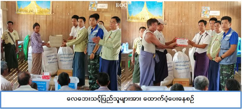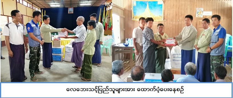 လူမှုဝန်ထမ်း၊ ကယ်ဆယ်ရေးနှင့်ပြန်လည်နေရာချထားရေးဝန်ကြီးဌာန၊ ဘေးအန္တရာယ်ဆိုင်ရာစီမံခန့်ခွဲ မှုဦးစီးဌာန၊ ပခုက္ကူခရိုင်ဦးစီးမှူးရုံးမှ တာဝန်ရှိသူများနှင့် ပေါက်မြို့နယ်ဦးစီးမှူးရုံးမှ တာဝန်ရှိသူများသည် ပေါက် မြို့နယ်၊ မျှားပိုင်းကျေးရွာအုပ်စု၊ လင်တောင်ကျေးရွာအုပ်စု၊ ထန်းတပင်ကျေးရွာအုပ်စု၊ ဆပန်ကျေးရွာအုပ်စု၊ ကူကားကျေးရွာအုပ်စုနှင့် ပလောင်းကျေးရွာအုပ်စုတို့တွင် (၁၇-၄-၂၀၁၉)ရက်နေ့တွင် ဖြစ်ပွားခဲ့သော လေဘေး ကြောင့် ပြိုကျနေအိမ်(၄)လုံး၊ တစိတ်တပိုင်းပြိုကျနေအိမ်(၁)လုံး၊ အမိုးလန်အိမ်ခြေ(၉၈)လုံး၊ အမိုးလန် ဘုန်းတော်ကြီးကျောင်း(၃)ကျောင်း၊ အိမ်ထောင်စု(၁၀၃)စု၊ လူဦးရေ(၅၀၈)ဦးဘေးသင့်ခဲ့ရာ ကျောင်း/အိမ် ဆောက်ပစ္စည်းဖိုး(၄,၅၀၀,၀၀၀)ကျပ်၊ဆန်ရိက္ခာဖိုး(၁,၀၆၆,၈၀၀)ကျပ်၊ စုစုပေါင်း(၅,၅၆၆,၈၀၀) (ကျပ်ငါးဆယ့် ငါးသိန်းခြောက်သောင်းခြောက်ထောင့်ရှစ်ရာကျပ်တိတိ)တို့အားလည်းကောင်း၊ ပြိုကျနေအိမ်(၄)အိမ်အတွက် ကယ်ဆယ်ရေးပစ္စည်း(၁၅)မျိုးပါ(၄)ပုံး၊ အမိုးလန်နေအိမ်(၉၉)အိမ်အတွက် ကယ်ဆယ်ရေးပစ္စည်း(၉)မျိုးပါ (၉၉) စုံတို့အားလည်းကောင်း (၁၈-၄-၂၀၁၉)ရက်နေ့တွင် ခရိုင်သဘာဝဘေးအန္တရာယ်ဆိုင်ရာစီမံခန့်ခွဲမှုကော်မတီ ဝင်များဖြစ်သော ဒုတိယခရိုင်အုပ်ချုပ်ရေးမှူး ဦးဇော်လွင်၊ ခရိုင်ပြန်/ဆက်ဦးစီးမှူး ဦးဇော်ဌေးအောင်၊ ပေါက်မြို့ နယ်အုပ်ချုပ်ရေးမှူး ဦးကျော်စွာအုန်း၊ ရွှေကန်မြေ လူမှုကူညီရေးအသင်း ဥက္ကဌ ဦးသန်းကျော်သူ၊ ကျေးရွာအုပ်စု အုပ်ချုပ်ရေးမှူးများ၊ တာဝန်ရှိသူများနှင့်အတူ ဘေးသင့်ပြည်သူများ၏ လက်ဝယ်အရောက် ထောက်ပံ့ပေးအပ် ခဲ့ကြောင်း သိရှိရပါသည်၊၊
