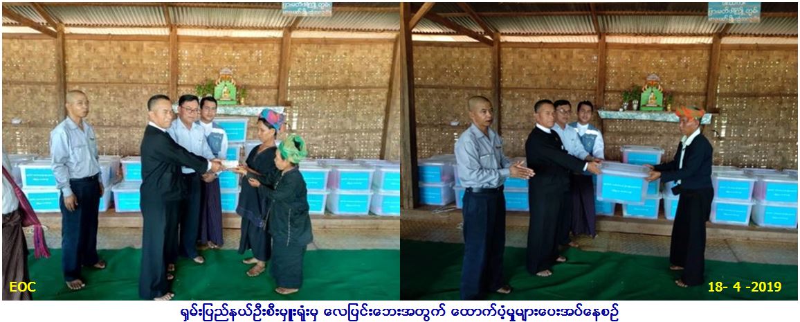လူမှုဝန်ထမ်း၊ ကယ်ဆယ်ရေးနှင့်ပြန်လည်နေရာ ချထားရေးဝန်ကြီးဌာန၊ ဘေးအန္တရာယ်ဆိုင်ရာ စီမံခန့်ခွဲမှုဦးစီးဌာန၊ ရှမ်းပြည်နယ် ဦးစီးမှူးရုံးမှ တာဝန်ရှိသူများသည် ဆီဆိုင်မြို့နယ်၊ ပါလောပါကယ် ကျေးရွာအုပ်စု၊ နောင်လုံကျေးရွာနှင့် တိကလိုင်ကျေးရွာတို့တွင် လေပြင်းတိုက်ခတ်ပြီး မိုးသည်းထန်စွာ သွန်းမှုကြောင့် အမိုးလန်ပျက်စီးခဲ့သော လူနေအိမ် (၄၅)လုံးနှင့် ဘုန်းတော်ကြီးကျောင်း (၂)ကျောင်းအတွက် အိမ်ဆောက်/ကျောင်းဆောက်ပစ္စည်းဖိုး (၃,၇၀၉,၀၀၀/-)ကျပ်နှင့် ကယ်ဆယ်ရေးပစ္စည်း(၁၀)မျိုး (၄၅) အိမ်ထောင်စုစာအား (၁၈.၄.၂၀၁၉)ရက်နေ့တွင် ဘေးသင့်ပြည်သူလက်ဝယ်သို့ သွားရောက်ထောက်ပံ့ခဲ့ပါကြောင်း သတင်းရရှိပါသည်။