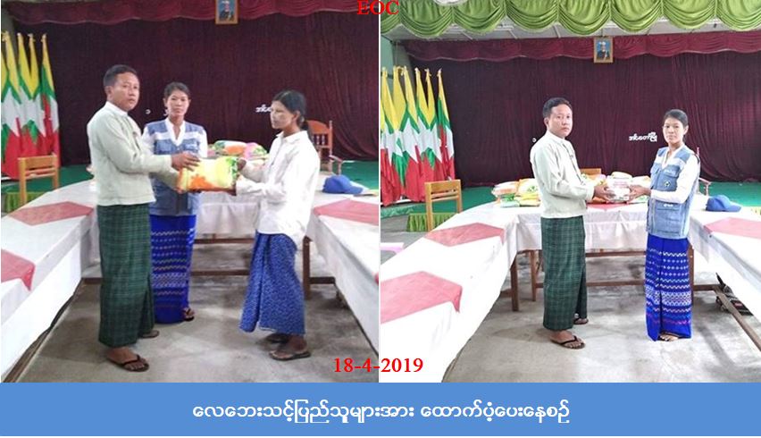 လူမှုဝန်ထမ်း၊ ကယ်ဆယ်ရေးနှင့် ပြန်လည်နေရာချထားရေးဝန်ကြီးဌာန၊ ဘေးအန္တရာယ်ဆိုင်ရာ စီမံခန့်ခွဲမှု ဦးစီးဌာန ကသာခရိုင်ဦးစီးမှူးရုံးမှတာဝန်ရှိသူများသည် အင်းတော်မြို့နယ် ရပ်ကွက်/ ကျေးရွာများတွင် (၁၅ .၄.၂၀၁၉)နေ့တွင် ဖြစ်ပွားခဲ့သော လေဘေးကြောင့် အိမ်ခြေ (၇၃)လုံး အမိုးလန်ပျက်စီးခဲ့ရာ အိမ်ထောင်စု (၇၃) စုအတွက် ကယ်ဆယ်ရေးပစ္စည်း(၄)မျိုး၊ (၇၃)အိမ်ထောင်စာ အိမ်ဆောက်ပစ္စည်းဖိုး(၂၆၈၅,၀၀၀) ကျပ်တို့ကို (၁၈.၄.၂၀၁၉) နေ့တွင် အင်းတော်မြို့နယ်အထွေထွေအုပ်ချုပ်ရေးအစည်းအဝေးခန်းမ၌ ဘေးသင့်ပြည်သူများ ထံသို့ထောက်ပံ့ပေးအပ်ခဲ့ကြောင်း သိရှိရပါသည်။