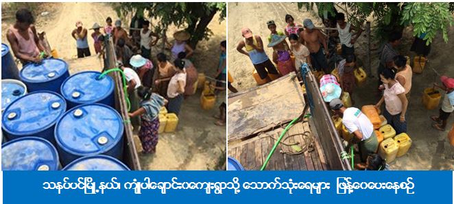 ကယ်ဆယ်ရေးနှင့် ပြန်လည်နေရာချထားရေးဦးစီးဌာန၊ ပဲခူးတိုင်းဒေသကြီးဦးစီးမှူးရုံးမှ တာဝန်ရှိသူများသည် (၂၉-၄-၂၀၁၆) ရက်နေ့တွင် သနပ်ပင်မြို့နယ်၊ ကျုံပါချောင်းဝကျေးရွာသို့ သောက်သုံးရေဂါလံ (၁၃၅၂) အား ဖြန့်ဝေပေးခဲ့ကြောင်းသိရှိရပါသည်။