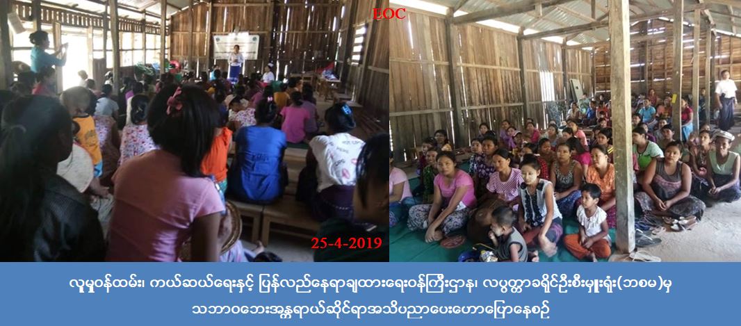 လူမှုဝန်ထမ်း၊ ကယ်ဆယ်ရေးနှင့် ပြန်လည်နေရာချထားရေးဝန်ကြီးဌာန၊ ဘေးအန္တရာယ်ဆိုင်ရာ စီမံခန့်ခွဲမှုဦးစီး ဌာန၊ လပွတ္တာခရိုင်ဦးစီးမှူးရုံး (ဘစမ)မှတာဝန်ရှိသူများသည် လပွတ္တာမြို့နယ်၊ သင်္ဃန်းကြီးကျေးရွာတွင်(၂၅-၄-၂၀၁၉)ရက်နေ့ (၁၀း၀၀)အချိန်၌ ကျေးရွာနေ ပြည်သူ(၇၀) ဦးတို့ကိုလည်းကောင်း၊ သပြုကုန်းကျေးရွာ အုပ်စု၊ သပြုကုန်းကျေးရွာ၌(၂၅-၄-၂၀၁၉) ရက်နေ့(၁၃:၃၀) အချိန်တွင် ကျေးရွာနေပြည်သူ (၁၀၀)တို့ကို လည်း ကောင်း သဘာဝဘေးအန္တရာယ်ဆိုင်ရာအသိပညာပေးဟောပြောခြင်းနှင့် အသိပညာပေးလက်ကမ်း စာစောင် များ ဝေငှပေးခဲ့ကြောင်း သိရှိရပါသည်။