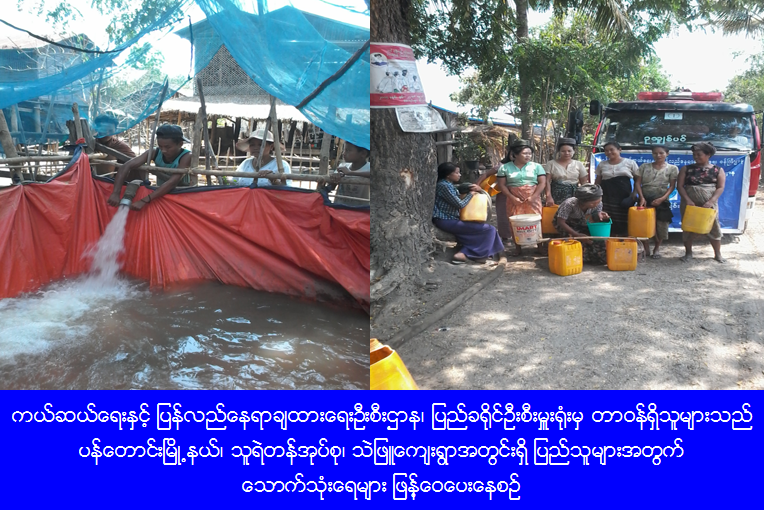 ကယ်ဆယ်ရေးနှင့် ပြန်လည်နေရာချထားရေးဦးစီးဌာန၊ ပြည်ခရိုင်ဦးစီးမှူးရုံးမှ တာဝန်ရှိသူများသည် (၃၀-၄-၂၀၁၆) ရက်နေ့တွင် ပြည်ခရိုင်၊ ပန်တောင်းမြို့နယ်၊ သူရဲတန်အုပ်စု၊ သဲဖြူကျေးရွာသို့သောက်သုံးရေဂါလံ ၁၆၀၀ အားဖြန့်ဝေပေးခဲ့ကြောင်း သိရှိရပါသည်။