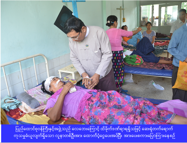ပြည်ထောင်စုဝန်ကြီးနှင့်အဖွဲ့သည် ညနေပိုင်းတွင် ရမည်းသင်းခရိုင်၊ ပြည်သူ့ဆေးရုံသို့ရောက်ရှိပြီး လေဘေးကြောင့်ထိခိုက်ဒဏ်ရာရရှိသဖြင့် ဆေးရုံ တက်ရောက်ကုသမှုခံယူလျက်ရှိသော လူနာ (၁၁) ဦးအား တွေ့ဆုံအားပေး စကားပြောကြားပြီး ထောက်ပံ့ငွေကျပ် (၃.၉) သိန်းနှင့် အသင့်စားခေါက်ဆွဲထုပ် များအားလည်းကောင်း၊ သေဆုံးသူ (၁) ဦးအတွက် ထောက်ပံ့ငွေ ကျပ် (၁) သိန်းအား တာဝန်ရှိသူ (၁) ဦးထံသို့လည်းကောင်း ထောက်ပံ့ပေးအပ်ခဲ့ပါသည်။
