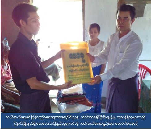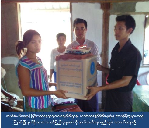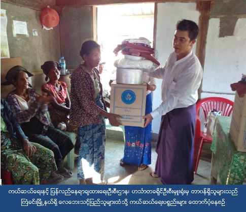 ၂။ အဆိုပါ လေဘေးသင့်ပြည်သူများအား ၂၀၁၆ခုနှစ် မေလ(၁)ရက်နေ့တွင် ကယ်ဆယ်ရေးနှင့် ပြန်လည်နေရာချထားရေးဦးစီးဌာနမှ ဟင်္သာတခရိုင်ဦးစီးမှူး၊ ဦးသန်းစိုး-၂ နှင့် တာဝန်ရှိသူများနှင့် မြို့နယ်အထွေထွေအုပ်ချုပ်ရေးဦးစီးဌာနမှ တာဝန်ရှိသူများနှင့်အတူကယ်ဆယ်ရေးပစ္စည်းများအားပြည်သူများလက်ဝယ်သို့ ထောက်ပံ့ခဲ့ပါသည်။