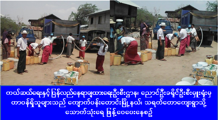 ကယ်ဆယ်ရေးနှင့် ပြန်လည်နေရာချထားရေးဦးစီးဌာန၊ ညောင်ဦးခရိုင်ဦးစီးမှူးရုံးမှ တာဝန်ရှိသူများသည် ကျောက်ပန်းတောင်းမြို့နယ်၊ ကမ်းဖြူကျေးရွာအုပ်စု၊ သရက်တောကျေးရွာအိမ်ခြေ (၁၆၃) လူဦးရေ(၁၂၈၀) အတွက် (၃-၅-၂၀၁၆) ရက်နေ့တွင် သောက်သုံးရေဂါလံ စုစုပေါင်း(၁၆၀၀)အား ဒေသခံပြည်သူများထံသို့ သွားရောက်ဖြန့်ဝေပေးခဲ့ကြောင်းသိရှိရပါသည်။