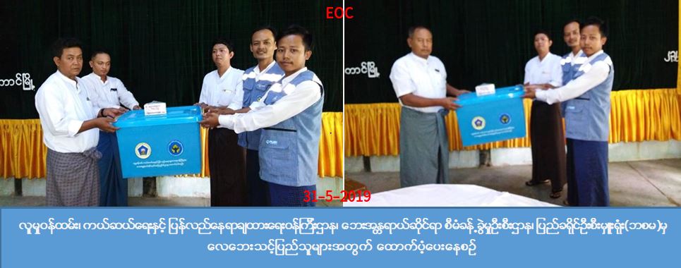 ပဲခူးတိုင်းဒေသကြီး၊ ပြည်ခရိုင်၊ ရွှေတောင်မြို့နယ်၊ ကျေးရွာအုပ်စု(၆)စု၊ (၁၃)ရွာ၌ (၂၄.၅.၂၀၁၉)ရက်နေ့ လေဘေးသင့် အမိုးလန်နေအိမ်(၉၉)လုံး ဘုန်းကြီးကျောင်း (၂)ကျောင်း၊ ပြိုလဲ နေအိမ်(၁၁)လုံး လူ(၂၈)ဦးတို့ အတွက် အိမ်ဆောက်ပစ္စည်းဖိုးနှင့် ဆန်ဖိုး ထောက်ပံ့ငွေ စုစုပေါင်း (၃၇၅၇၈၀၀)ကျပ် နှင့် ကျေးရွာအုပ်စု(၆)စု (၁၄)ရွာ၌ (၂၇.၅.၂၀၁၉)ရက်နေ့ လေဘေးသင့် အမိုးလန်နေအိမ်(၃၅)လုံး ပြိုလဲ နေအိမ်(၂)လုံး လူ(၇)ဦးတို့ အတွက် အိမ်ဆောက်ပစ္စည်းဖိုးနှင့် ဆန်ဖိုး ထောက်ပံ့ငွေ စုစုပေါင်း (၁,၀၅၂,၄၀၀)ကျပ်၊ စုစုပေါင်း ထောက်ပံ့ ငွေ(၄,၈၁၀,၂၀၀)ကျပ်နှင့် စုစုပေါင်းပြိုလဲ(၁၃)အိမ်ရှိ အိမ်ထောင်စု(၁၃)စုအတွက် ကယ်ဆယ်ရေး ပစ္စည်း (၁၆)မျိုး (ပလပ်စတစ်ပုံးပါ) (၁၃)အိမ်ထောင်စာအား လူမှုဝန်ထမ်း၊ ကယ်ဆယ်ရေးနှင့် ပြန်လည်နေရာချ ထားရေးဝန်ကြီးဌာန၊ဘေးအန္တရာယ်ဆိုင်ရာ စီမံခန့်ခွဲမှုဦးစီးဌာန၊ ပြည်ခရိုင်ဦးစီးမှူးရုံးရှိ တာဝန်ရှိသူများမှ (၃၁.၅.၂၀၁၉) ရက်နေ့တွင် ရွှေတောင်မြို့နယ်အထွေထွေအုပ်ချုပ်ရေးဦးစီးဌာနသို့ သွားရောက်၍ ထောက်ပံ့ ပေးအပ်ခဲ့ ကြောင်း သိရှိရပါသည်။