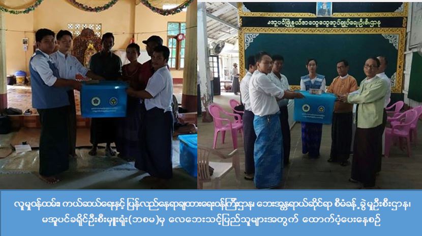 လူမှုဝန်ထမ်းကယ်ဆယ်ရေးနှင့်ပြန်လည်နေရာချထားရေးဝန်ကြီးဌာန ဘေးအန္တရယ်ဆိုင်ရာစီမံခန့်ခွဲမှုဦးစီးဌာန မအူပင်ခရိုင်ဦးစီးမှူးရုံးမှ တာဝန်ရှိသူများသည်(၂၈.၅.၂၀၁၉) ရက်နေ့တွင်လေပြင်း တိုက်ခတ်မှုကြောင့် ညောင်တုန်း၊ပန်းတနော်နှင့်မအူပင်မြို့နယ် တွင်နေအိမ်များပြိုကျခြင်းနှင့် အမိုးလန်ပျက်စီးခြင်းများဖြစ်ပွားခဲ့ ပါသဖြင့် ညောင်တုန်းမြို့နယ်၊ သပြုရေလယ်ကျွန်းကျေးရွာအုပ်စု၊ ရွှေဒင်္ဂါးကျွန်း၊ဓမ္မသုခကျွန်း) ကျးရွာ ၌ (၂၈.၅.၂၀၁၉)ရက်နေ့တွင်ဖြစ်ပွားခဲ့သည့် လေပြင်းတိုက်ခတ်မှုကြောင့်ပြိုကျနေအိမ်(၁)လုံး အိမ်ထောင်စု(၁)စု အတွက် အိမ်ထောင်စု(၁)စုလျှင် ကယ်ဆယ်ရေးပစ္စည်း(၁၆)မျိုး Care Myanmarအလှူ ပစ္စည်းတစ်ခုစီနှင့် အိမ်ဆောက်ပစ္စည်းရန်ပုံငွေ(၁၀၀,၀၀၀)ကျပ်နှင့်တစ်စိတ်တစ်ပိုင်းပျက်စီးခဲ့သည့်နေအိမ်(၄)လုံး၊ အိမ်ထောင်စု (၄)စုအတွက် အိမ်ဆောက်ပစ္စည်းဖိုးရန်ပုံငွေ(၂၀၀,၀၀၀)ကျပ် စုစုပေါင်းလူဦးရေ( ၂၃) ဦးအတွက် ဆန်ရိက္ခာ ပစ္စည်းဖိုး (၄၈,၃၀၀)ကျပ်၊ စုစုပေါင်းကယ်ဆယ်ရေးရန်ပုံငွေ(၃၄၈,၃၀၀) ကျပ်တို့ကို (၃၁.၅.၂၀၁၉) ရက်နေ့ (၁၁:၄၅) နာရီအချိန်တွင်ညောင်တုန်းမြို့နယ်အုပ်ချုပ်ရေးမှူးရုံး၌၎င်း၊ ပန်းတနော်မြို့နယ်၊ ထိန်ကုလားကုန်း ကျေးရွာအုပ်စု၊ ကျေးရွာခွဲ(၅)ရွာတို့၌ (၂၈.၅.၂၀၁၉) ရက်နေ့တွင်ဖြစ်ပွားခဲ့သော လေပြင်းတိုက်ခတ်မှုကြောင့် ပြိုကျနေအိမ် (၈) အိမ်ထောင်စု (၈) စုအတွက် အိမ်ထောင်စုတစ်စုလျင် ကယ်ဆယ်ရေးပစ္စည်း(၁၆)မျိုး Care Myanmarအလှူပစ္စည်းတစ်ခုစီနှင့်အိမ်ဆောက်ပစ္စည်းရန်ပုံငွေ(၈၀၀,၀၀၀)ကျပ်နှင့် တစ်စိတ်တစ်ပိုင်း ပျက်စီးခဲ့ သည့် နေအိမ်(၃၂)လုံး၊ အိမ်ထောင်စု(၃၂) စုစာအတွက် အိမ်ဆောက်ပစ္စည်းဖိုးရန်ပုံငွေ (၁,၂၈၀,၀၀၀) လူဦးရေ (၁၂၈)ဦးအတွက် ဆန်ရိက္ခာပစ္စည်းဖိုး(၃၉၂,၇၀၀)ကျပ်၊ စုစုပေါင်းကယ်ဆယ်ရေးရန်ပုံငွေ (၂,၄၇၂,၇၀၀) ကျပ် တို့ကို(၃၁.၅.၂၀၁၉)ရက်နေ့(၁၃:၀၀) နာရီအချိန်ထိန်ကုလားကုန်းဘုန်းကြီးကျောင်း၌၎င်း (၃) မအူပင်မြို့နယ် (အင်းတေး၊ ကံကုန်း၊ကျွဲဒုံးနှင့် ဆိပ်သာကျေးရွာအုပ်စု ကျေးရွာခွဲ(၆)ရွာ၌ (၂၈.၅.၂၀၁၉) ရက်နေ့တွင်ဖြစ်ပွား ခဲ့သည့် လေပြင်းတိုက်ခတ်မှုကြောင့် ပြိုကျနေအိမ်(၁၃)လုံး၊ အိမ်ထောင်စု(၁၃)စုအတွက် အိမ်ထောင်စု (၁)စုလျင် ကယ်ဆယ်ရေးပစ္စည်း(၁၆)မျိုးနှင့်Care Myanmarအလှူပစ္စည်းတစ်ခုစီနှင့် အိမ်ဆောက်ပစ္စည်း ဖိုးရန်ပုံငွေ(၁,၃၀၀,၀၀၀)ကျပ်နှင့် တစ်စိတ်တစ်ပိုင်းပျက်စီးခဲ့သည့်နေအိမ်(၁၆)၊ အိမ်ထောင်စု(၁၆) စုအတွက် အိမ်ဆောက်ပစ္စည်းဖိုးရန်ပုံငွေ(၈၀၀,၀၀၀)ကျပ်၊လူဦးရေ (၁၁၉) ဦးအတွက် ဆန်ရိက္ခာပစ္စည်းဖိုး (၂၄၉,၉၀၀) ကျပ်၊ စုစုပေါင်းကယ်ဆယ်ရေးရန်ပုံငွေ (၂,၃၄၉,၉၀၀)ကျပ်တို့ကို (၃၁.၅.၂၀၁၉) ရက်နေ့ (၁၁:၄၅) နာရီ အချိန်တွင် မအူပင်မြို့နယ်အုပ်ချုပ်ရေးမှူးရုံး၌
