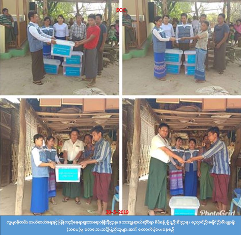 လူမှုဝန်ထမ်း၊ ကယ်ဆယ်ရေးနှင့်ပြန်လည်နေရာချထားရေးဝန်ကြီးဌာန၊ ဘေးအန္တရာယ်ဆိုင်ရာ စီမံခန့်ခွဲမှုဦးစီး ဌာန၊ ညောင်ဦးခရိုင်ဦးစီးမှူးရုံးမှ တာဝန်ရှိသူများသည် ညောင်ဦးမြို့နယ်အတွင်းရှိ တောင်ရွာနောင်ကျေးရွာ အုပ်စု၊တောင်ရွာနောင် (တ/မ)ကျေးရွာ၊ ကြအိုကျေးရွာအုပ်စု၊ မြောင်ကျေးရွာ၊ မီးလောင်ဖျားကျေးရွာအုပ်စု၊ လယ်ကန်ကျေးရွာနှင့် တောရွာကျေးရွာအုပ်စု၊ တောရွာကျေးရွာတွင် (၂၈-၅-၂၀၁၉) ရက်နေ့ (၁၇:၀၀) နာရီအချိန် မိုးရွာသွန်းပြီး လေပြင်းတိုက်ခတ်မှုကြောင့် လုံးဝပျက်စီးနေအိမ် (၅)လုံး၊ အမိုးလန် နေအိမ် (၅၇)လုံးနှင့် ဘုန်းတော်ကြီးကျောင်း (၁)ကျောင်း အမိုးလန်ခဲ့ပြီး အိမ်ခြေ(၅၇)လုံး၊အိမ်ထောင်စု(၅၇)စု၊ လူဦးရေ (၂၈၅)ဦးလေဘေးသင့်ခဲ့ရာ လူဦးရေ (၂၈၅)ဦးအတွက် ဆန်ရိက္ခာ (၇)ရက်စာအတွက် (၅၆၈,၅၀၀)၊ အိမ်ဆောက်ပစ္စည်းဖိုး (၃,၃၇၇,၀၀၀)ကျပ်၊ ကျောင်းဆောက်ပစ္စည်းဖိုး (၁၀၀,၀၀၀)ကျပ်နှင့် ကယ်ဆယ်ရေး ပစ္စည်း (၁၇)မျိုး (၅)အိမ်ထောင်စာတို့ကို (၃၀-၅-၂၀၁၉) ရက်နေ့တွင် ကျေးရွာများသို့သွားရောက်၍ ဘေးသင့်ပြည်သူတို့၏ လက်ဝယ် အရောက် သွားရောက်ထောက်ပံ့ပေးခဲ့ကြောင်း သိရှိရပါသည်။