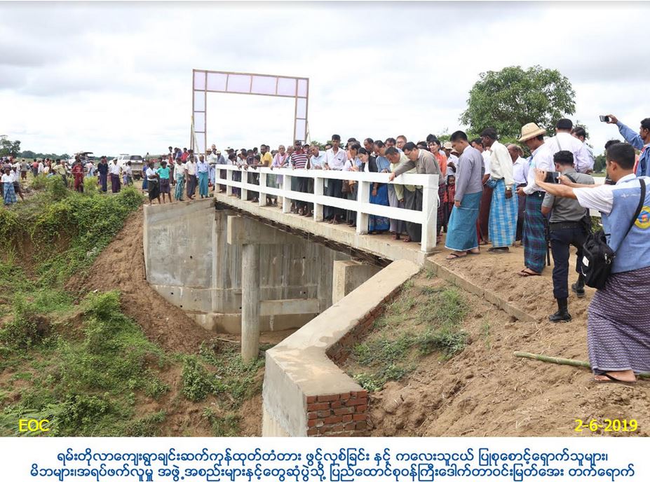 ထို့နောက် တိုင်းဒေသကြီးလွှတ်တော် ကိုယ်စားလှယ်က ကျေးဇူးတင်စကားပြောကြာခဲ့ပြီး စုပေါင်းမှတ်တမ်းတင် ဓါတ်ပုံရိုက်ကူးခဲ့ပါသည်။ အဆိုပါ တံတားသည် အမျိုးသားသဘာဝဘေး အန္တရယ် ဆိုင်ရာ ရန်ပုံငွေမှ ကျပ် (၅၇) သန်းနှင့် ပဲခူးတိုင်းဒေသကြီးအစိုးရအဖွဲ့မှ (၅)သန်း စုစုပေါင်းငွေကျပ် ( ၆၂) သန်း ကုန်ကျခံ တည်ဆောက်ခဲ့ခြင်းဖြစ်ပါသည်။