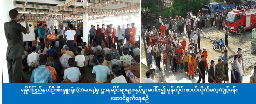 ကယ်ဆယ်ရေးနှင့် ပြန်လည်နေရာချထားရေးဦးစီးဌာန၊ ရခိုင်ပြည်နယ်ဦးစီးမှူးရုံးသည် ဌာနဆိုင်ရာများ၊ ဒေသခံပြည်သူများနှင့် ပူးပေါင်း၍ (၂၆-၄-၂၀၁၆) ရက်နေ့တွင် ပေါက်တောမြို့၌လည်းကောင်း၊ (၂၈-၄-၂၀၁၆) ရက်နေ့တွင် မြေပုံမြို့၌လည်းကောင်း “မုန်တိုင်းဇာတ်တိုက်လေ့ကျင့်ခန်း” ကို ဆောင်ရွက်ခဲ့ကြောင်း သိရှိရပါသည်။