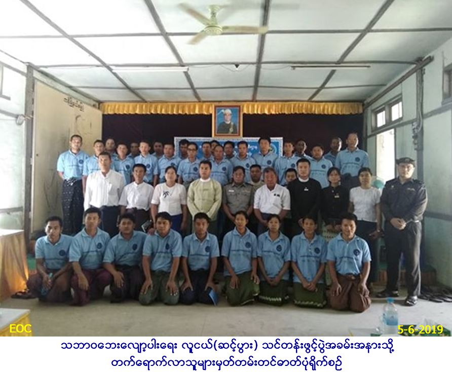 လူမှုဝန်ထမ်း၊ ကယ်ဆယ်ရေးနှင့်ပြန်လည်နေရာ ချထားရေးဝန်ကြီးဌာန၊ ဘေးအန္တရာယ်ဆိုင်ရာစီမံ ခန့်ခွဲမှုဦးစီးဌာန၊ စစ်ကိုင်းတိုင်းဒေသကြီး ဦးစီးမှူးရုံးမှ တာဝန်ရှိသူများနှင့် ယင်းမာပင်ခရိုင် ဦးစီးမှူးရုံးမှ တာဝန်ရှိသူများသည် ယင်းမာပင်ခရိုင်၊ ကနီမြို့နယ်၊ အထွေထွေအုပ်ချုပ်ရေး ဦးစီးဌာနအစည်းအဝေး ခန်းမ၌ (၅-၆-၂၀၁၉) ရက်နေ့၊ နံနက် (၀၉း၀၀) နာရီအချိန်တွင် သဘာဝဘေးလျော့ပါးရေး လူငယ်(ဆင့်ပွား) သင်တန်း ဖွင့်ပွဲအခမ်းအနားအား ကျင်းပပြုလုပ်ခဲ့ရာ ဌာနဆိုင်ရာများမှ တာဝန်ရှိသူများ၊ ရပ်မိ/ရပ်ဖများ၊ သင်တန်းသား/သူ (၃၀) ဦးတက်ရောက်ခဲ့ပြီး တက်ရောက်လာ သူများအား သဘာဝဘေးအန္တရာယ်ဆိုင် ရာဝေါဟာရများနှင့် သဘာဝဘေးအန္တရာယ် များအကြောင်း ဟောပြောပို့ချခြင်း၊ ကျောပိုးအိတ်၊ တီရှပ်၊ မိုးကာ၊ ဦးထုပ်၊ ဓာတ်မီး၊ စာရေးကိရိယာစသည့် သင်တန်းသုံးပစ္စည်း များဖြည့်ဝေပေးခြင်းတို့ ဆောင်ရွက်ခဲ့ပါသည်။ သင်တန်းကာလမှာ (၅-၆-၂၀၁၉) ရက်နေ့မှ (၇-၆-၂၀၁၉) ရက်နေ့ထိ (၃)ရက်တာ သင်ကြားပို့ချသွားမည်ဖြစ်ပါကြောင်း သတင်းရရှိပါသည်။