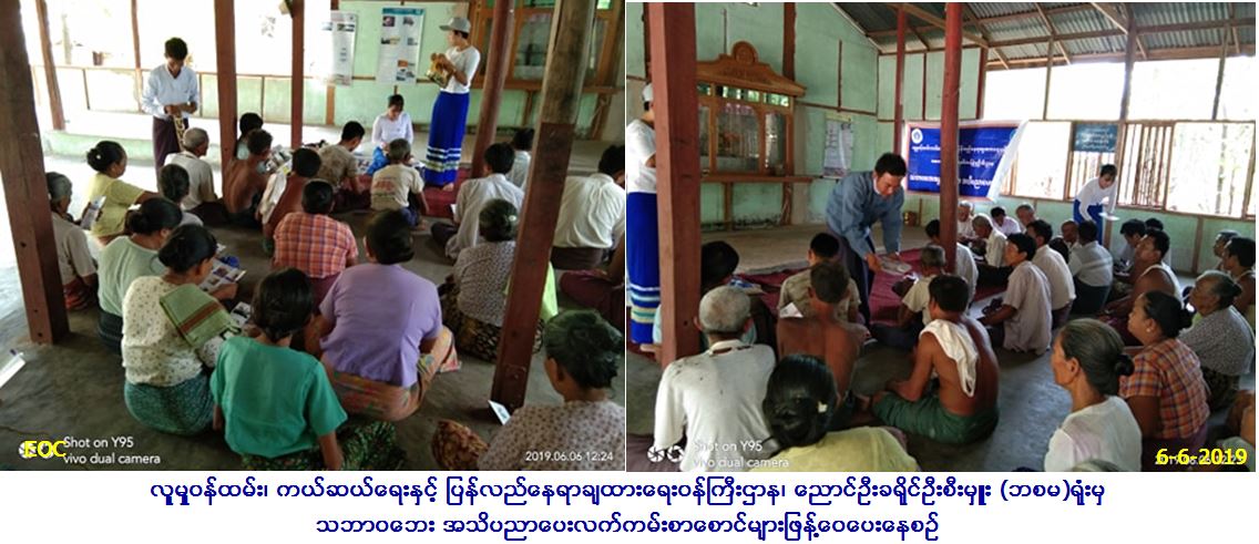 လူမှုဝန်ထမ်း၊ ကယ်ဆယ်ရေးနှင့် ပြန်လည်နေရာချထားရေးဝန်ကြီးဌာန၊ ဘေးအန္တရာယ်ဆိုင်ရာစီမံခန့်ခွဲမှုဦးစီးဌာန၊ ညောင်ဦးခရိုင်ဦးစီးမှူးရုံးမှ တာဝန်ရှိသူများသည် (၆.၆.၂၀၁၉)ရက်နေ့၊ နံနက် (၁၀:၃၀)အချိန်တွင် ကျောက်ပန်းတောင်းမြို့နယ်၊ တံခါးကြီးကျေးရွာတွင် သဘာဝဘေး အန္တရာယ်ဆိုင်ရာ အသိပညာပေ ဟောပြောပွဲတစ်ရပ် ကျင်းပပြုလုပ်ခဲ့ပြီး အသိပညာပေးလက်ကမ်းစာစောင်များကို ဝေငှခဲ့ပါသည်။ အဆိုပါ ဟောပြောပွဲသို့ ကျေးလက်နေပြည်သူလူထု (၆၀)ဦး တက်ရောက်ခဲ့ပါကြောင်း သတင်းရရှိပါသည်။