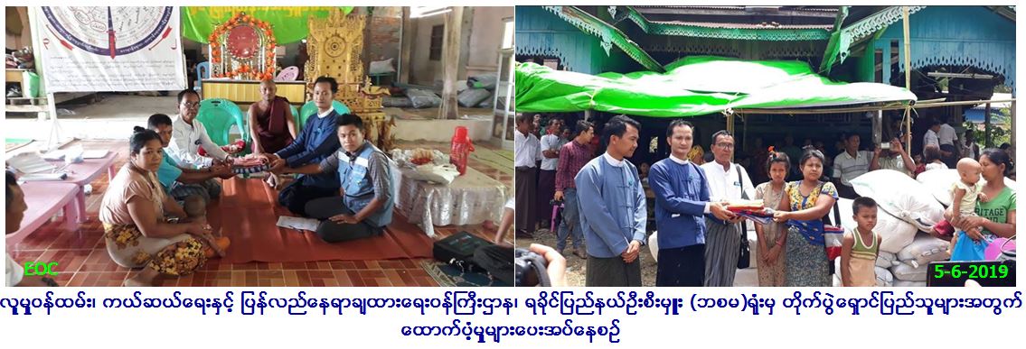 လူမှုဝန်ထမ်း၊ ကယ်ဆယ်ရေးနှင့် ပြန်လည်နေရာချထားရေးဝန်ကြီးဌာန၊ ဘေးအန္တရာယ်ဆိုင်ရာစီမံခန့်ခွဲမှုဦးစီးဌာန၊ ရခိုင်ပြည်နယ်ဦးစီးမှူးရုံးမှ တာဝန်ရှိသူများသည် ပုဏ္ဏားကျွန်းမြို့နယ်နှင့် ကျောက်တော်မြို့နယ်တွင် တိုက်ပွဲများဖြစ်ပွားမှုကြောင့် ပုဏ္ဏားကျွန်းမြို့၊ စံပြရပ်ကွက်၊ ပေါက်တောပြင်ကျေးရွာ၊ ဗန်းဗွီးကျေးရွာနှင့် ကွမ်းတောင်ကျေးရွာများသို့ နေရပ်စွန့်ခွာထွက်ပြေးတိမ်းရှောင်နေသော အိမ်ထောင်စု(၆၈၇)စု၊ လူဦးရေ (၁၆၉၃)ဦးတို့အတွက် ကယ်ဆယ်ရေးပစ္စည်း(၄)မျိုး တန်ဖိုး (၆,၇၅၃,၂၁၀)နှင့် ဆန်ရိက္ခာ(၁)လစာ တန်ဖိုး (၁၅,၂၃၇,၀၀၀)၊ စုစုပေါင်း တန်ဖိုး (၂၁၉,၉၀၂,၁၀၀)တို့အား (၆.၆.၂၀၁၉)ရက်နေ့တွင် ပြည်သူများထံ လက်ဝယ်အရောက် သွားရောက်ထောက်ပံ့ပေးအပ်ခဲ့ပါကြောင်း သတင်းရရှိပါသည်။
