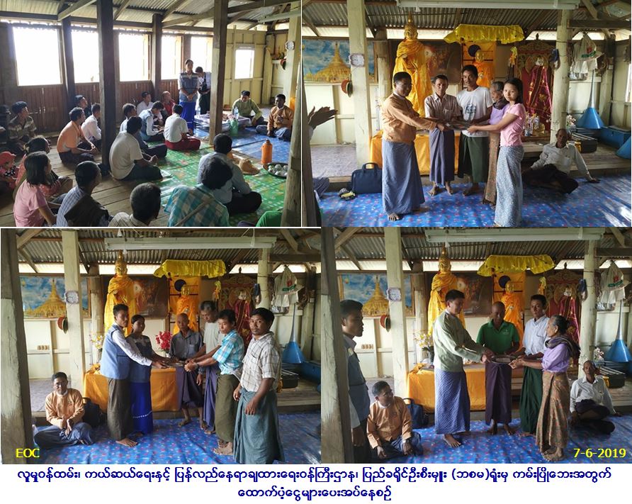 လူမှုဝန်ထမ်း၊ ကယ်ဆယ်ရေးနှင့် ပြန်လည်နေရာချထားရေးဝန်ကြီးဌာန၊ ဘေးအန္တရာယ်ဆိုင်ရာစီမံခန့်ခွဲမှုဦးစီးဌာန၊ ပြည်ခရိုင်ဦးစီးမှူးရုံးမှ တာဝန်ရှိသူများသည် (၅.၆.၂၀၁၉)ရက်နေ့တွင် ရွှေတောင်မြို့နယ်၊ ရှားပင်ကုန်းကျေးရွာအုပ်စု၊ ရှားပင်ကုန်းကျေးရွာတွင် ကမ်းပြိုကြိုရွှေ့ နေအိမ် (၁၈)လုံးအတွက် ထောက်ပံ့ငွေ (၁,၈၀၀,၀၀၀)ကျပ်ကို (၇.၆.၂၀၁၉)ရက်နေ့၌ ရွှေတောင်မြိုနယ်မြို့နယ်အုပ်ချုပ်ရေးမှူး၊ ရွှေတောင် မြို့နယ်တိုင်းဒေသကြီးလွှတ်တော်ကိုယ်စားလှယ် (၂)၊ မီးသတ်ဦးစီးဌာန၊ ကြက်ခြေနီတပ်ဖွဲ့တို့နှင့်ပူးပေါင်း၍ ပြည်သူ့လက်ဝယ် အရောက် သွားရောက်ထောက်ပံ့ပေးခဲ့ပြီး ဧရာဝတီမြစ်ကမ်းပါးပြိုကျမှုအခြေအနေအား ကွင်းဆင်းကြည့်ရှုဆောင်ရွက်ခဲ့ပါကြောင်း သတင်းရရှိပါသည်။