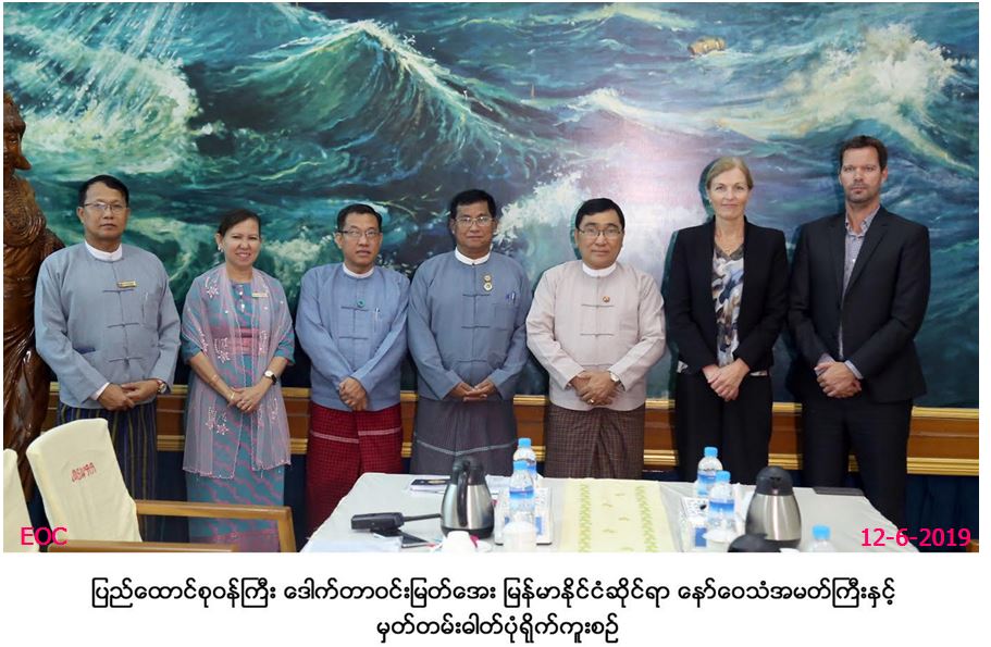 လူမှုဝန်ထမ်း၊ ကယ်ဆယ်ရေးနှင့်ပြန်လည်နေရာချထားရေးဝန်ကြီးဌာန၊ ပြည်ထောင်စုဝန်ကြီး ဒေါက်တာဝင်းမြတ်အေးအား မြန်မာနိုင်ငံ ဆိုင်ရာ နော်ဝေသံအမတ်ကြီး H.E. Ms. Tone Tinnes ဦးဆောင်သောအဖွဲ့က ယနေ့ နေ့လည်ပိုင်းတွင် အဆိုပါ ဝန်ကြီးဌာန၊ မေခလာခန်းမ၌ လာရောက်တွေ့ဆုံခဲ့ပါသည်။