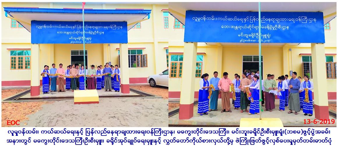 လူမှုဝန်ထမ်း၊ ကယ်ဆယ်ရေးနှင့် ပြန်လည်နေရာချထားရေးဝန်ကြီးဌာန၊ ဘေးအန္တရာယ်ဆိုင်ရာစီမံခန့်ခွဲမှုဦးစီးဌာန၊ မကွေးတိုင်းဒေသကြီး ဦးစီးမှူးရုံးလက်အောက်ရှိ မင်းဘူးခရိုင်ဦးစီးမှူးရုံးဖွင့်ပွဲအခမ်းအနားကို (၁၃-၆-၂၀၁၉)ရက်နေ့ နံနက် (၀၈း၀၀)နာရီအချိန်တွင် ဖွင့်လှစ်ခဲ့ရာ အခမ်းအနားကို အပိုင်း(၂)ပိုင်းဖြင့် ဖွင့်လှစ်ခဲ့ပါသည်။ အခမ်းအနားအစီအစဉ်(၁)အရ တိုင်းဒေသကြီးဦးစီးမှူးမှ အဖွင့်အမှာစကားပြောကြားရာ တွင် မင်းဘူးခရိုင်အတွင်း သဘာဝဘေးများဖြစ်ပွားလာပါက အချိန်နှင့်တစ်ပြေးညီ ထောက်ပံ့နိုင်ရန်အတွက် ရည်ရွယ်၍ဖွင့်လှစ်ရခြင်းဖြစ်ပါ ကြောင်း၊ အခမ်းအနားအစီအစဉ်(၂)အမျိုးသားလွှတ်တော်ကိုယ်စားလှယ်မှ ကျေးဇူးတင်စကားပြောကြားခဲ့ပြီး တိုင်းဒေသကြီးဦးစီးမှူး၊ ခရိုင် အုပ်ချုပ်ရေးမှူးနှင့် လွှတ်တော်ကိုယ်စားလှယ်တို့မှ ခရိုင်ဦးစီးမှူးရုံးဖွင့်ပွဲအခမ်းအနားကို ဖဲကြိုးဖြတ်ဖွင့်လှစ်ပေးခဲ့ပါကြောင်း အခမ်းအနားကို (၀၉း၀၀) အချိန် ရုတ်သိမ်းခဲ့ပါကြောင်း သတင်းရရှိပါသည်။