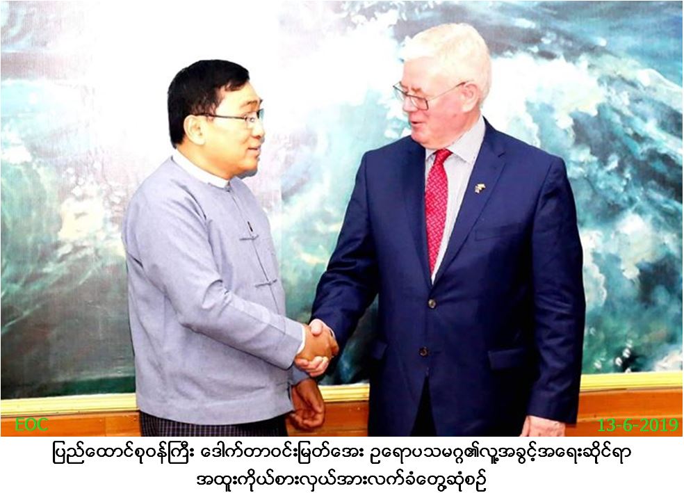 ထိုသို့တွေ့ဆုံရာတွင် လူ့အခွင့်အရေးကာကွယ်မြှင့်တင်ရေးအတွက် ကုလသမဂ္ဂကလေးသူငယ်များ၏ အခွင့်အရေးဆိုင်ရာစာချုပ် (CRC)၊ အမျိုးသမီးများအား နည်းမျိုးစုံဖြင့် ခွဲခြားမှုပပျောက်ရေးဆိုင်ရာစာချုပ် (CEDAW)၊ မသန်စွမ်းသူများ၏ အခွင့်အရေးဆိုင်ရာစာချုပ် (CRPD)နှင့် စီးပွားရေး၊ လူမှုရေးနှင့် ယဉ်ကျေးမှုအခွင့်အရေးများဆိုင်ရာ အပြည်ပြည်ဆိုင်ရာ စာချုပ်(ICESCR)စသည့် လူ့အခွင့်အရေး ပင်မ စာချုပ်ကြီး(၄)ခုကို မြန်မာနိုင်ငံမှ အတည်ပြု ပါဝင်ခဲ့သည့်ကိစ္စများ၊ CRC ၏နောက်ဆက်တွဲအခွင့်အရေးဆိုင်ရာ နောက်ဆက်တွဲ အခြေပြု စာချုပ် (OPAC) ကို လက်မှတ်ထိုးခဲ့ပြီး ယခုနှစ်အတွင်း (OPAC) ကိုအတည်ပြုပါဝင်ရန်နှင့် အရပ်ဘက်နှင့် နိုင်ငံရေးအခွင့်အရေးများဆိုင်ရာ အပြည်ပြည်ဆိုင်ရာစာချုပ် (ICCPR) ကို လက်မှတ်ရေးထိုးရန် ကြိုးပမ်းနေသည့်အခြေအနေများ၊ လူ့အခွင့်အရေးကောင်စီ၏ UPR သို့ ၂၀၂၀ ခုနှစ်တွင် အစီရင်ခံစာတင်သွင်းရန်ဆောင်ရွက်နေမှုများ၊ ကလေးသူငယ်များနှင့် လက်နက်ကိုင်ပဋိပက္ခများနှင့်စပ်လျဉ်း၍ ဆိုးရွားသော ကျူးလွန်မှု(၆)မျိုးကိုကာကွယ်ရန် အမျိုးသားကော်မတီဖွဲ့စည်းဆောင်ရွက်နေမှု၊ ပဋိပက္ခအတွင်းအမျိုးသမီးများအား အကြမ်းဖက်မှုဆိုင်ရာ ပူးတွဲ ကြေငြာချက်(Joint Communiqe)အား အကောင်အထည်ဖော်ရေးဆောင်ရွက်နေမှုများ၊ ရခိုင်ပြည်နယ်တည်ငြိမ်အေးချမ်းရေးနှင့် ဖွံ့ဖြိုး တိုးတက်ရေးအတွက် UEHRD အပါအဝင် သက်ဆိုင်ရာကော်မတီအသီးသီးနှင့် ပြည်ထောင်စုအစိုးရ၊ ပြည်နယ်အစိုးရတို့မှ ညှိနှိုင်းဆောင်ရွက် နေမှုများ၊ ရခိုင်ပြည်နယ်ဆိုင်ရာအကြံပြုချက်များအပေါ် အကောင်အထည်ဖော်ဆောင်ရွက်နေမှုအခြေအနေများနှင့် လက်ရှိအခြေအနေအပေါ် မူတည်၍ ပြန်လည်ညှိနှိုင်း ဆောင်ရွက်နေမှုများ၊ ဘင်္ဂလားဒေ့ရှ်နိုင်ငံဘက်သို့ရောက်ရှိနေသော နေရပ်စွန့်ခွာသူများအား ပြန်လည်လက်ခံရေး ဆောင်ရွက်နေမှု နောက်ဆုံးအခြေအနေများ၊ ပြန်လည်လက်ခံရေး လုပ်ငန်းစဉ်များတွင် အာဆီယံနိုင်ငံများမှ ပါဝင်ဆောင်ရွက်မည့် အနေအထားနှင့် ပူးပေါင်းဆောင်ရွက်မည့်အခြေအနေများ၊ လွတ်လပ်သောစုံစမ်းစစ်ဆေးရေးကော်မရှင် (ICOE) မှ ရခိုင် ပြည်နယ်ဖြစ်စဉ်များ အတွင်း လူ့အခွင့်အရေးချိုးဖောက်မှုစွပ်စွဲချက်များနှင့် စပ်လျဉ်း၍ စုံစမ်းစစ်ဆေး၍ တာဝန်ခံမှုကိစ္စရပ်များအား ဖြေရှင်းဆောင်ရွက်မည့် အခြေ အနေများ၊ မြန်မာနိုင်ငံတစ်ဝန်းလုံးရှိ နေရပ်စွန့်ခွာသူများအတွက် ကယ်ဆယ်ရေးစခန်းများကို ပိတ်သိမ်းနိုင်ရေး အတွက်အမျိုးသားအဆင့် မဟာဗျူဟာရေးဆွဲ ဆောင်ရွက်နေမှုပြီးစီးတော့မည့်အခြေအနေများ၊ ကချင်ပြည်နယ်ရှိ ကယ်ဆယ်ရေးစခန်းများပိတ်သိမ်းနိုင်ရေးနှင့် ပြန်လည် နေရာချထားရေးအတွက် လုပ်ငန်းအဖွဲ့အား ဖွဲ့စည်းခဲ့ပြီးနောက် ကချင်ဒေသ