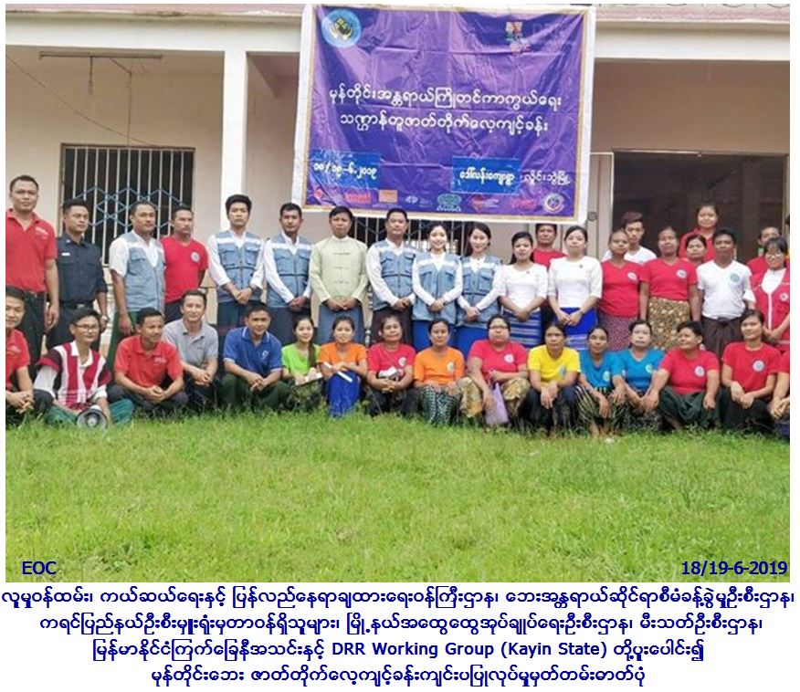 လူမှုဝန်ထမ်း၊ ကယ်ဆယ်ရေးနှင့် ပြန်လည်နေရာချထားရေးဝန်ကြီးဌာန၊ ဘေးအန္တရာယ်ဆိုင်ရာစီမံခန့်ခွဲမှုဦးစီးဌာန၊ ကရင်ပြည်နယ်ဦးစီးမှူးရုံးမှ တာဝန်ရှိသူများ၊ မြို့နယ်အထွေထွေအုပ်ချုပ်ရေးဦးစီးဌာန၊ မီးသတ်ဦးစီးဌာန၊ မြန်မာနိုင်ငံကြက်ခြေနီအသင်းနှင့် DRR Working Group (Kayin State) တို့ပူးပေါင်း၍ (၁၈.၆.၂၀၁၉) ရက်နေ့မှ (၁၉.၆.၂၀၁၉) ရက်နေ့ထိ လှိုင်းဘွဲမြို့နယ်၊ ဒေါ်လန်းကျေးရွာတွင် ကျေးရွာနေပြည်သူလူထု အင်အား (၂၅၀) ဦးဖြင့် မုန်တိုင်းဘေးသဏ္ဍာန်တူဇာတ်တိုက်လေ့ကျင့်ခြင်းကို ပြုလုပ်ခဲ့ပါကြောင်း သတင်းရရှိပါသည်။