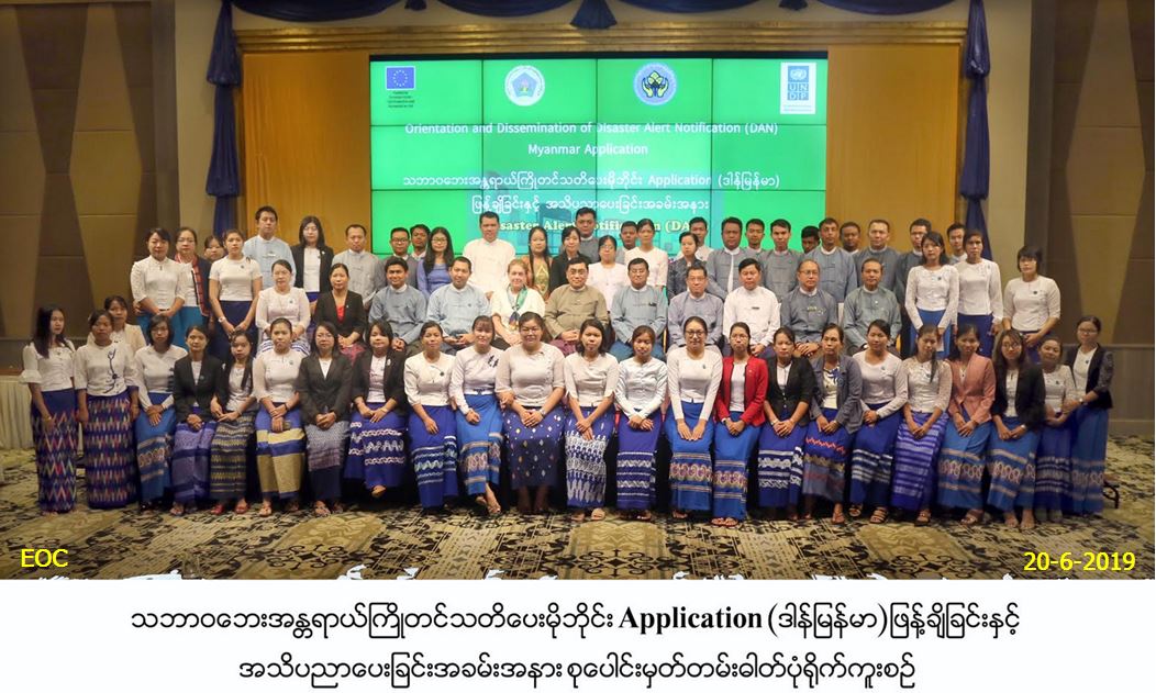 လူမှုဝန်ထမ်း၊ ကယ်ဆယ်ရေးနှင့် ပြန်လည်နေရာချထားရေးဝန်ကြီးဌာန၊ ဘေးအန္တရာယ် ဆိုင်ရာ စီမံခန့်ခွဲမှုဦးစီးဌာနသည် သဘာဝဘေးအန္တရာယ် ကြိုတင်သတိပေး ဒါန်မိုဘိုင်း အက်ပလီကေးရှင်း (Disaster Alert Notification- DAN Application) အား ၂၀၁၆ ခုနှစ်မှ စတင်ကာ ပုံစံထုတ် ရေးဆွဲခဲ့ပြီး UNDP နှင့် ECHO အဖွဲ့အစည်းများ၏ ရန်ပုံငွေပံ့ပိုးမှုဖြင့် ပိုမိုကောင်းမွန်အောင် အဆင့်မြှင့်တင်မှုများကို ဆောင်ရွက်ခဲ့ပါသည်။ ယင်းကဲ့သို့ အဆင့်မြှင့်တင် ရေးဆွဲထားသည့် DAN Application အား ပြည်သူများထံသို့ ကျယ်ကျယ်ပြန့်ပြန့် ဖြန့်ဝေပေးနိုင်ရေး အတွက် ဝန်ကြီးဌာနမှ ဝန်ထမ်းများအား အသိပညာပေးခြင်းနှင့် ဖြန့်ချိခြင်း အခမ်းအနားကို ယနေ့နံနက်ပိုင်းတွင် Hilton Hotel ၌ ကျင်းပပြုလုပ်ခဲ့ရာ ပြည်ထောင်စုဝန်ကြီး ဒေါက်တာဝင်းမြတ်အေး တက်ရောက်၍ အဖွင့်အမှာစကားပြောကြားခဲ့ပါသည်။