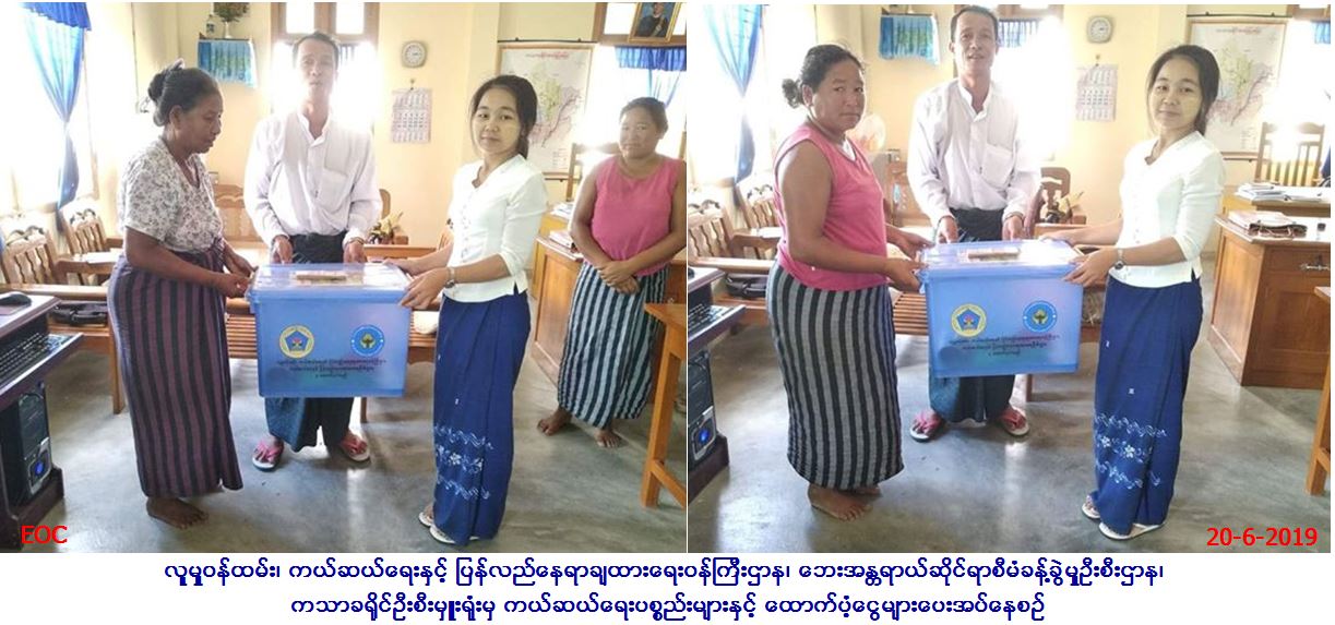 လူမှုဝန်ထမ်း၊ ကယ်ဆယ်ရေးနှင့်ပြန်လည်နေရာချထားရေးဝန်ကြီးဌာန၊ ဘေးအန ္တရာယ်ဆိုင်ရာစီမံခန့်ခွဲမှုဦးစီးဌာန၊ ကသာခရိုင်ဦးစီးမှူးရုံးမှ တာဝန်ရှိသူများသည် ကသာမြို့နယ်၊ ပုလွေရွှေကျေးရွာအုပ်စု၊ ရေလည်ကျွန်းကျေးရွာတွင် (၁၈-၆-၂၀၁၉)ရက်နေ့၌ ဧရာဝတီမြစ်ရေ တိုက်စားမှုကြောင့် ကမ်းပြိုပြောင်းရွှေ့အိမ်ထောင်စု(၄)စုအတွက် ကယ်ဆယ်ရေးပစ္စည်း(၁၀)မျိုး (၄)အိမ်ထောင်စာ၊ အိမ်ဆောက်ပစ္စည်းဖိုး (၄၀၀,၀၀၀/-)ကျပ်နှင့် လူဦးရေ(၁၇)ဦးအတွက် ဆန်ရိက္ခာဖိုးထောက်ပံ့ငွေ (၃၅,၇၀၀/-)ကျပ်တို့အား (၂၀-၆-၂၀၁၉)ရက်နေ့တွင် ဘေးသင့်ပြည်သူ ထံသို့ ထောက်ပံ့ပေးအပ်ခဲ့ပါကြောင်း သတင်းရရှိပါသည်။